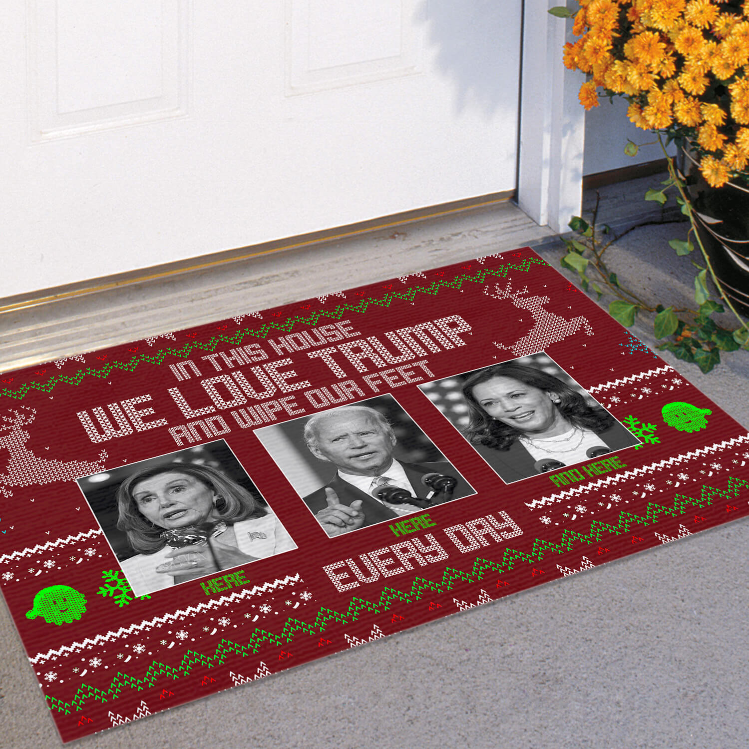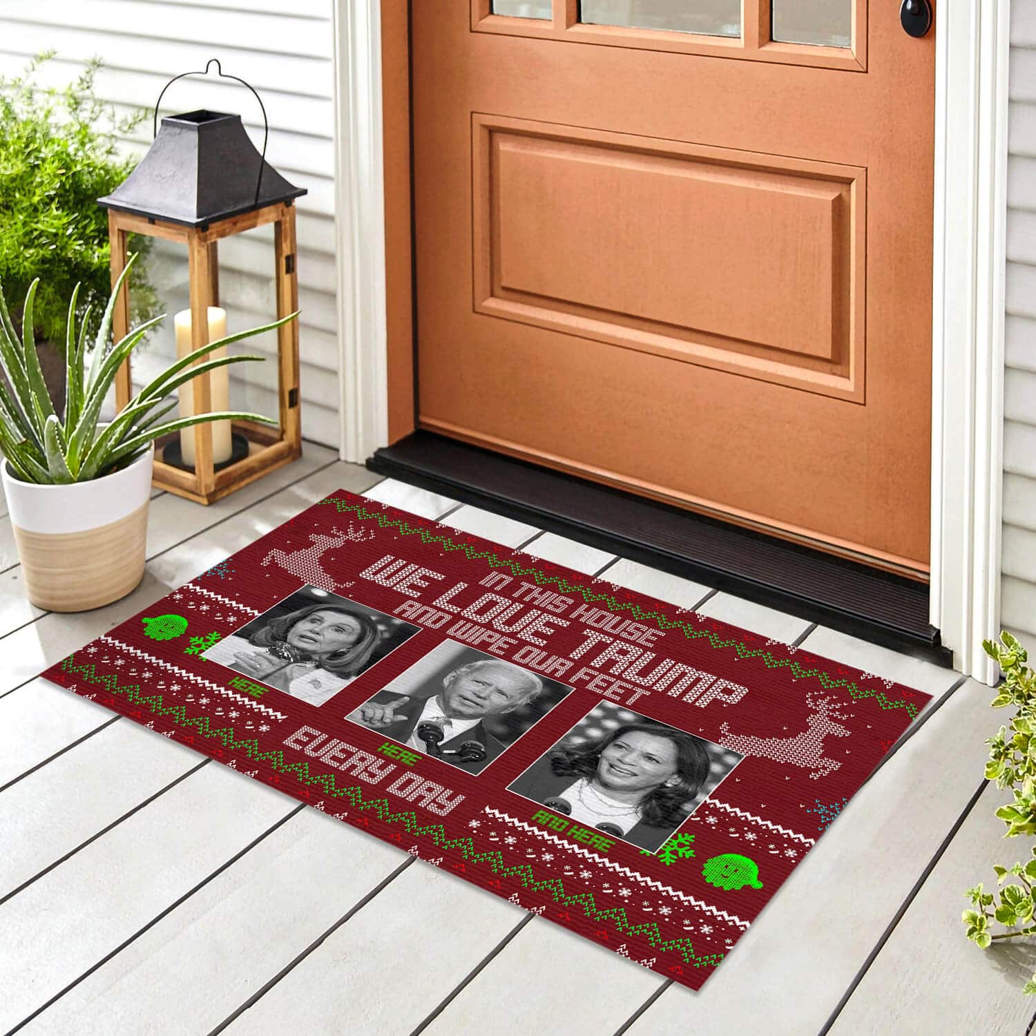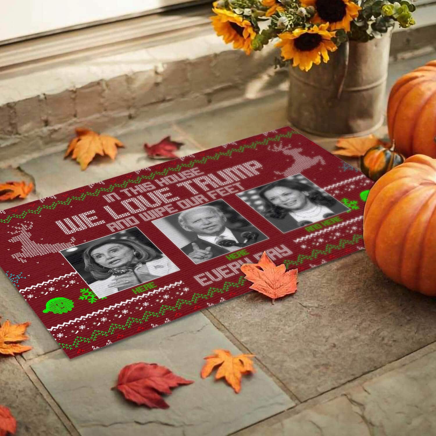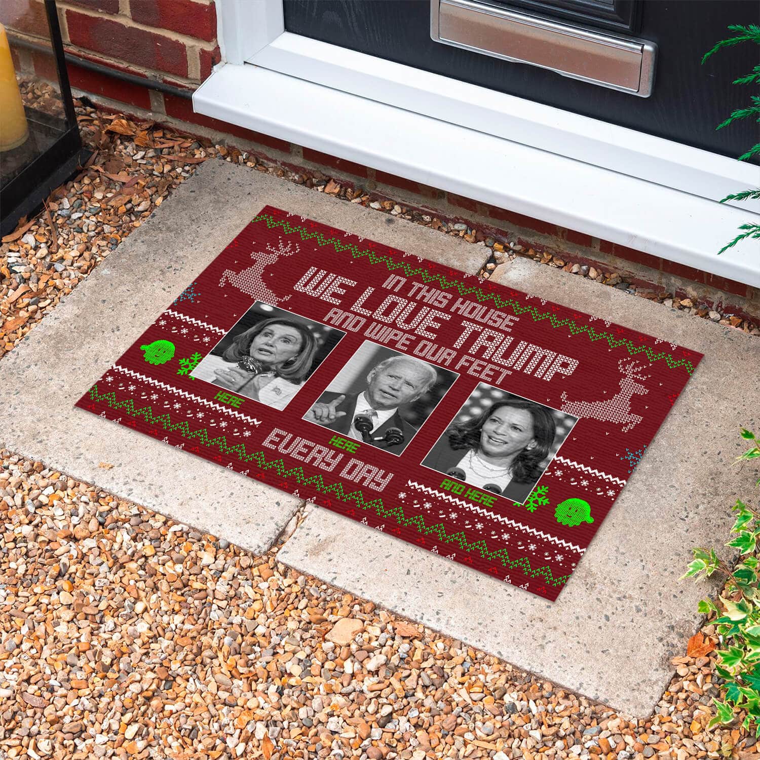 Let’s Shop In This House We Love Trump Doormat – Wipe Your Feet Here Biden Harris Pelosi Ugly Christmas Doormat!