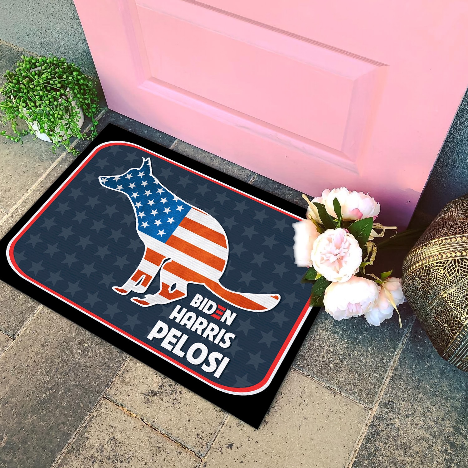 Let’s Shop Dog Pooping On Biden Pelosi Harris Funny House Doormat – Outdoor Indoor Doormat!