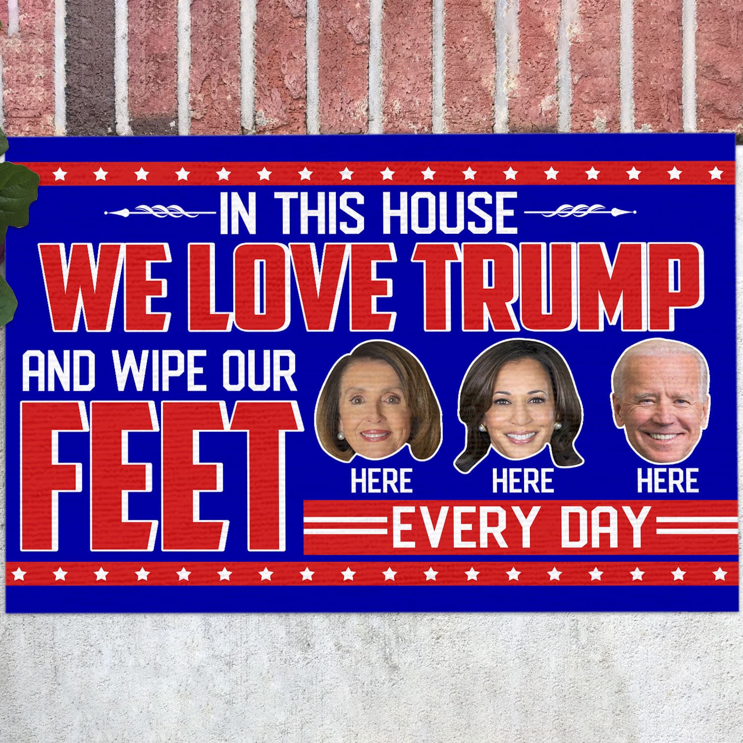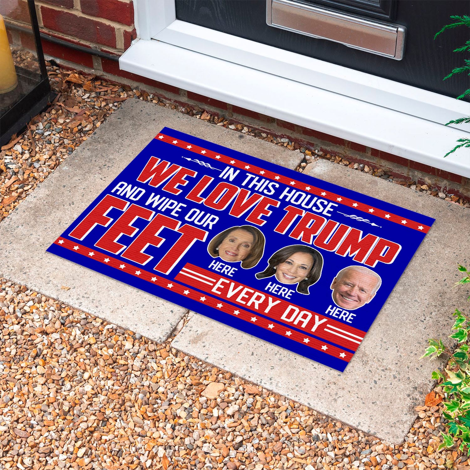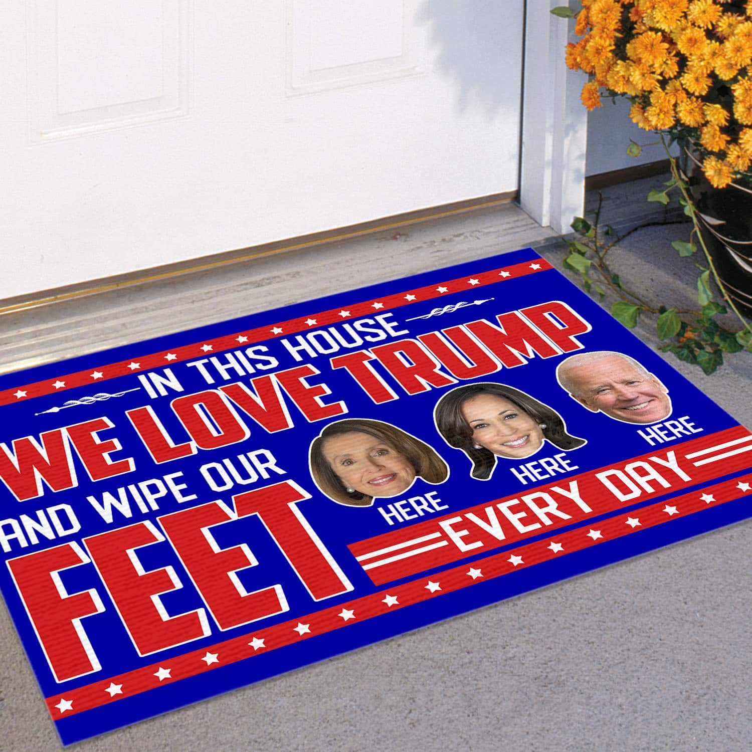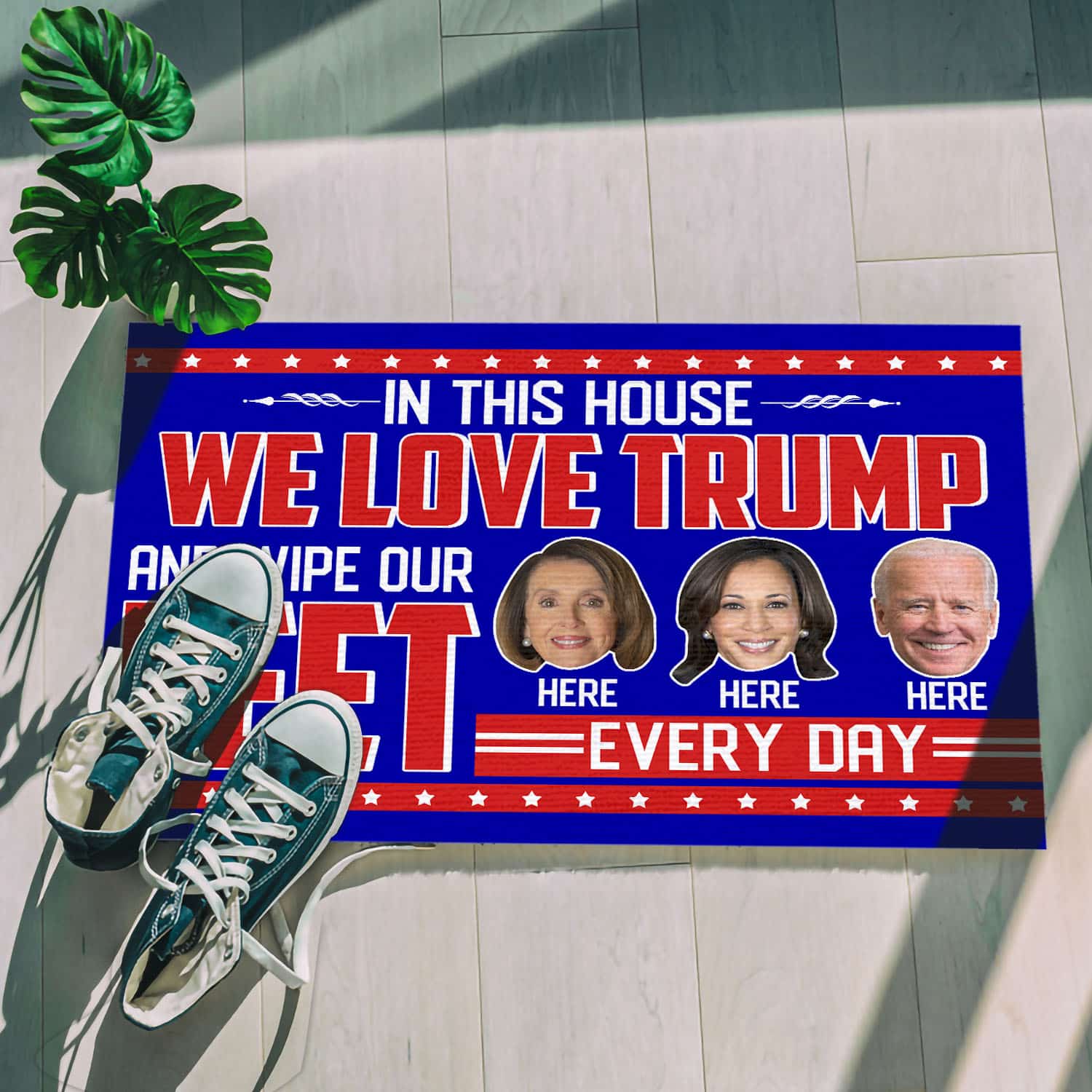 Let’s Shop In This House We Love Trump And Wipe Our Feet Here Every Day Biden Harris Pelosi Indoor Outdoor Doormat!