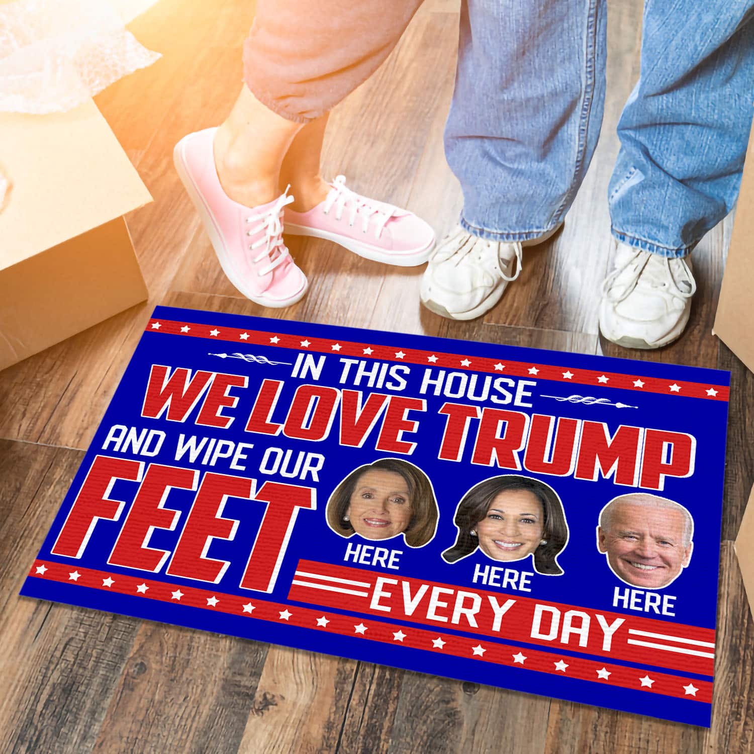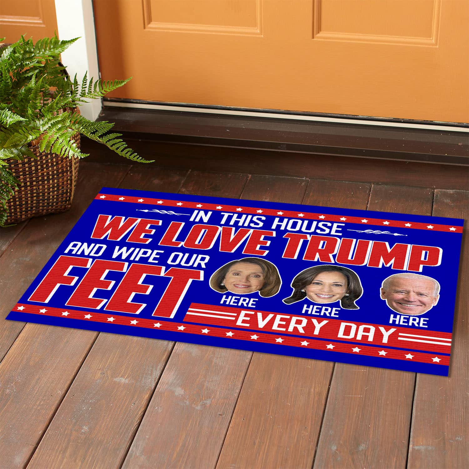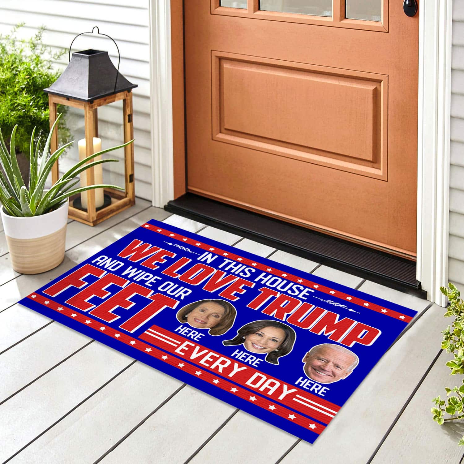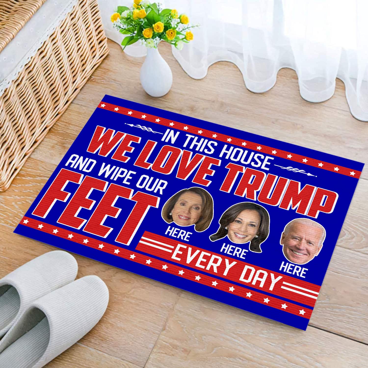 Let’s Shop In This House We Love Trump And Wipe Our Feet Here Every Day Biden Harris Pelosi Indoor Outdoor Doormat!