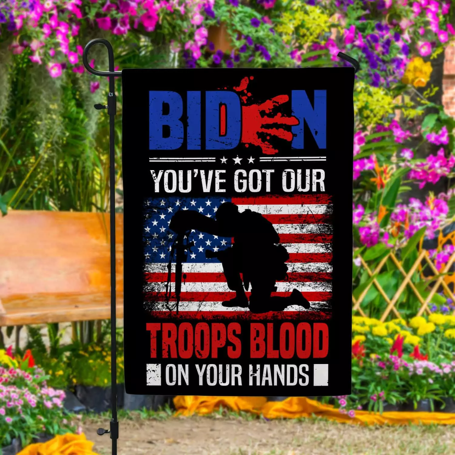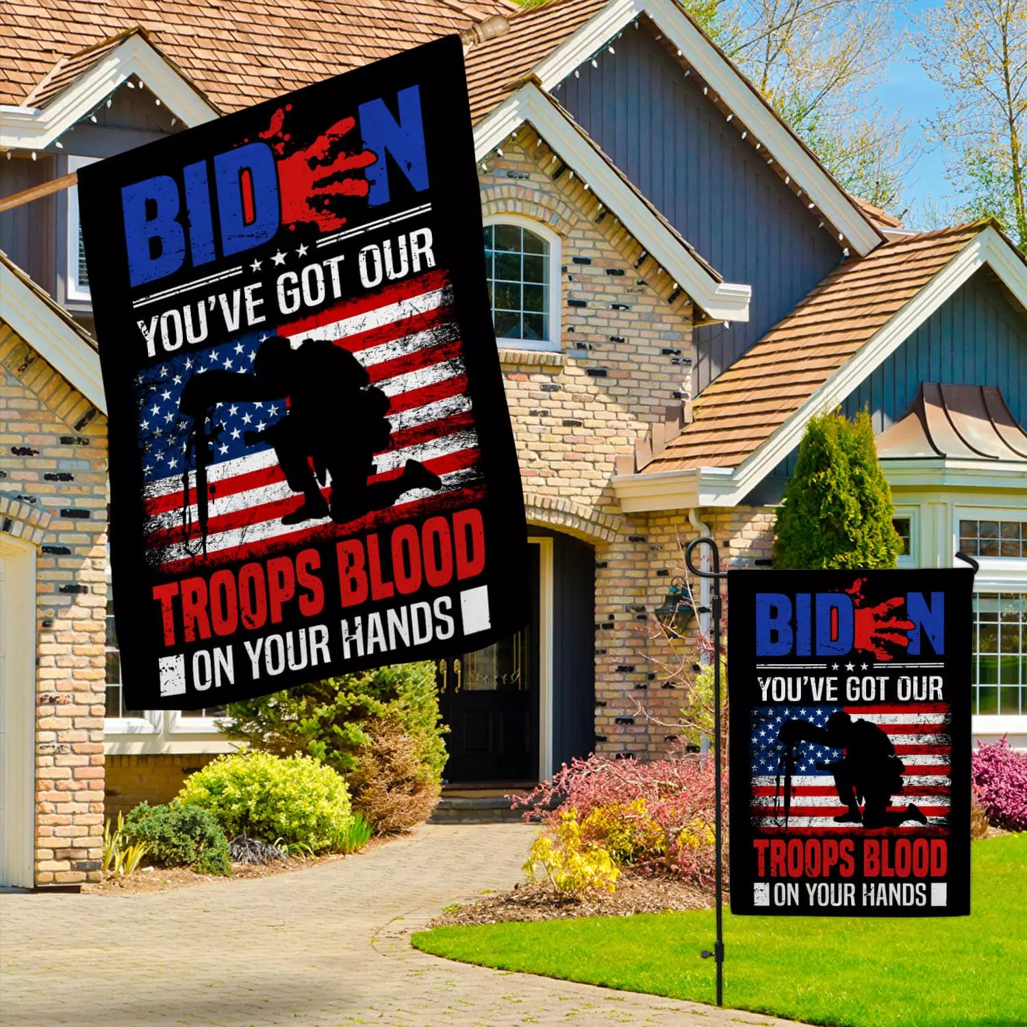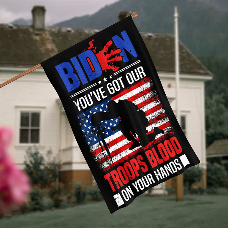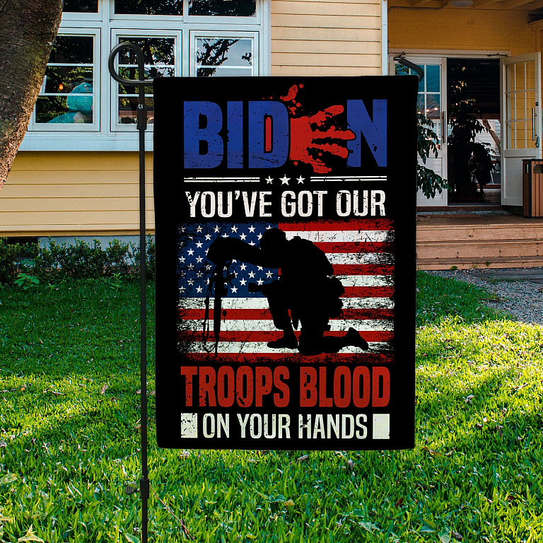 Let’s Shop Biden You’ve Got Our Troops Blood On Your Hands Garden Flag – Biden Blood On His Hands House Flag!