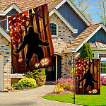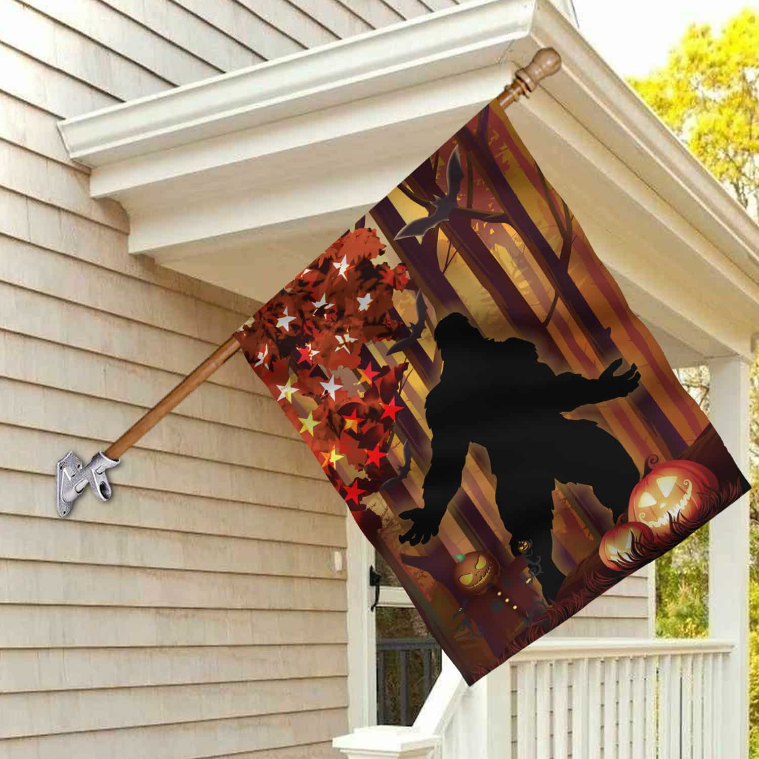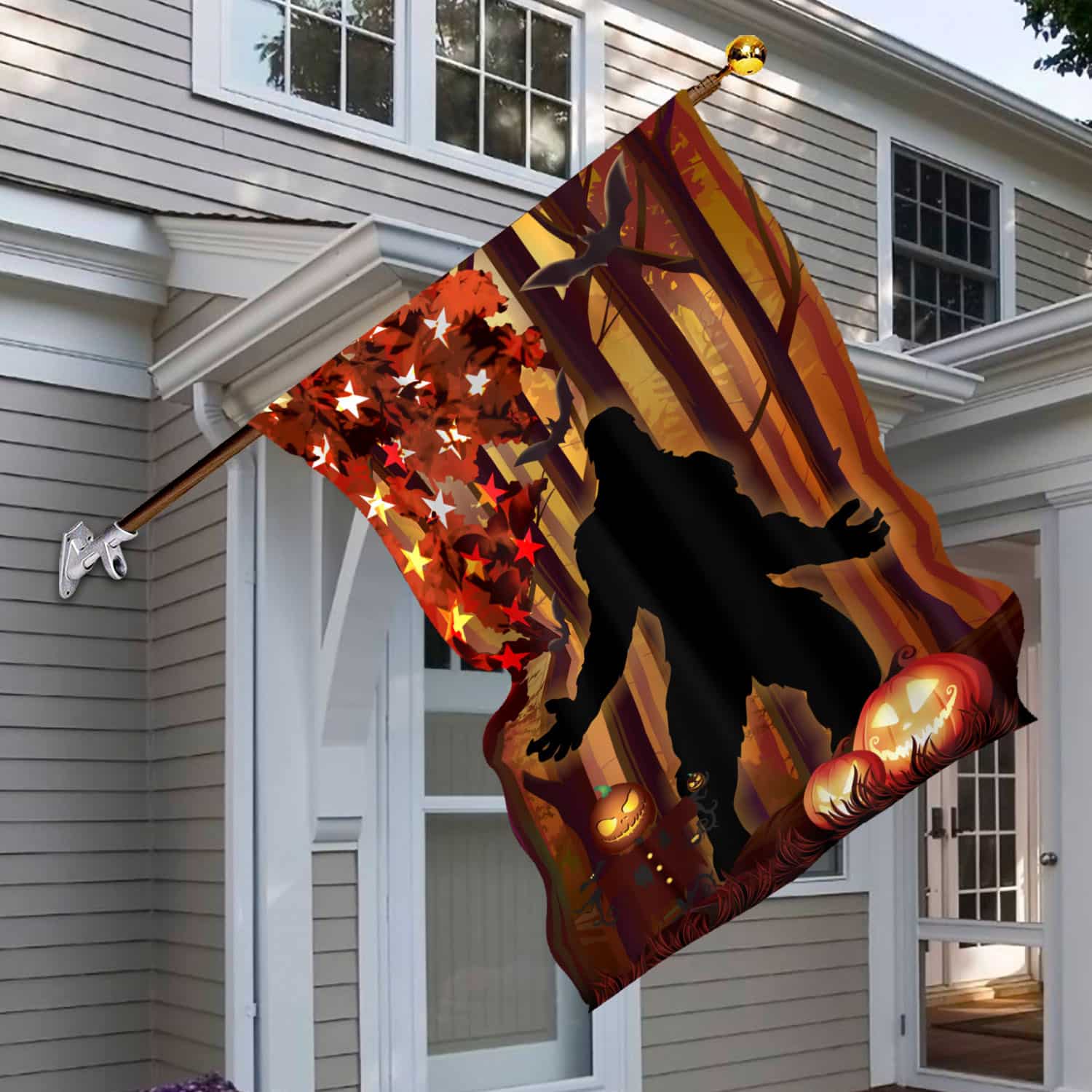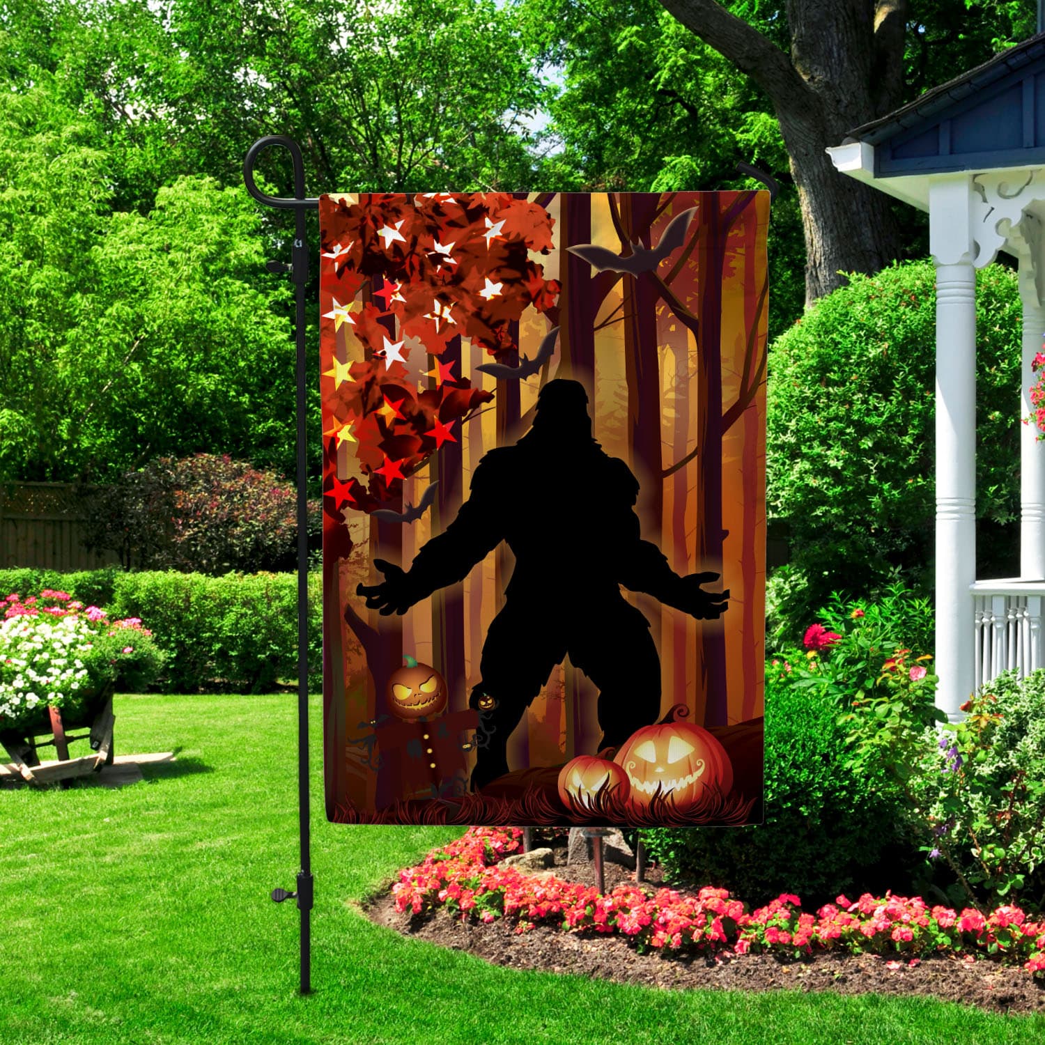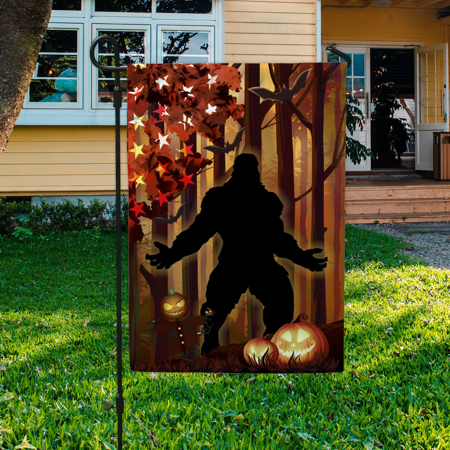 Let’s Shop Bigfoot Pumpkin American Outdoor House Flag – Bigfoot Halloween Home Garden Flag – Sasquatch Home Flag!