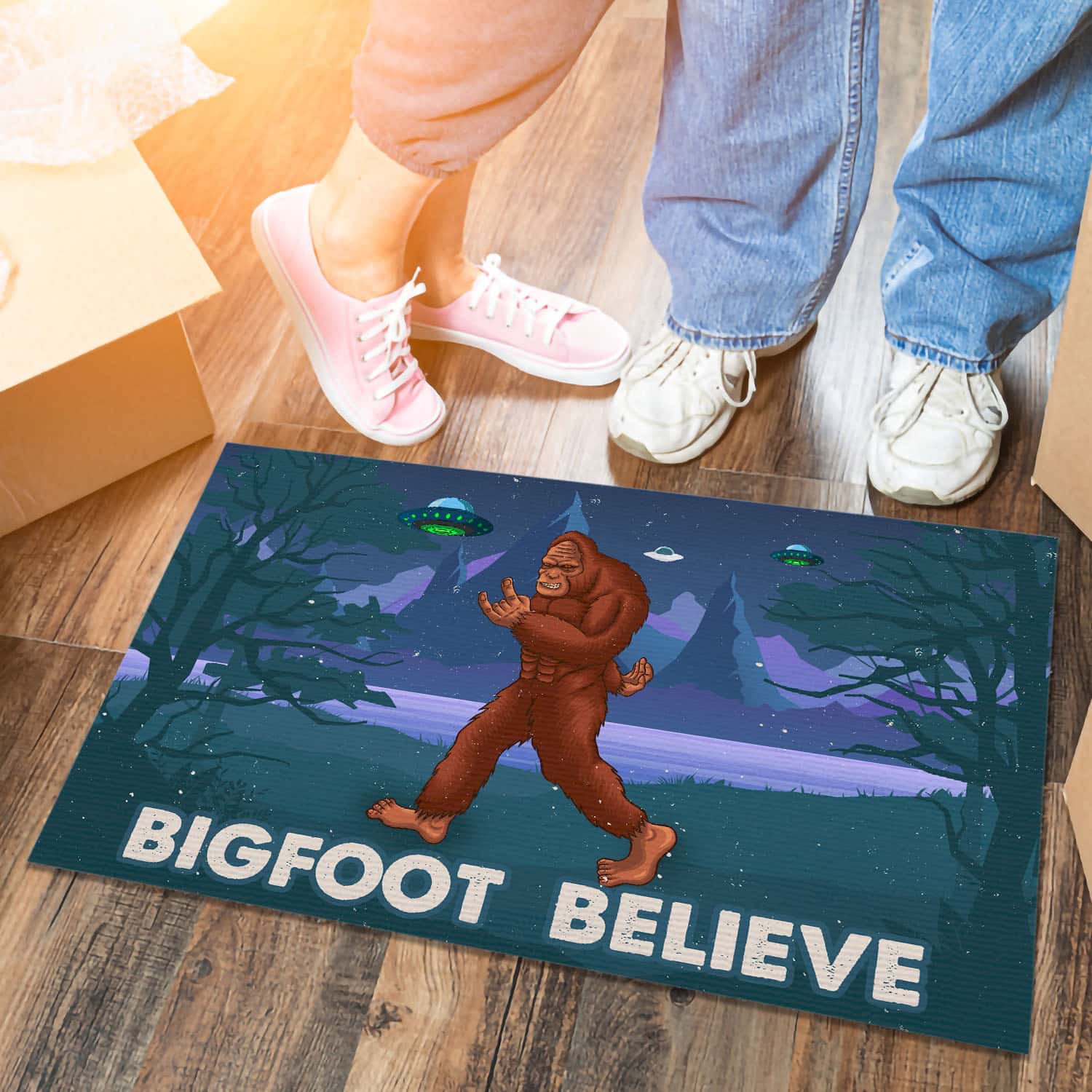 Let’s Shop Bigfoot Believe UFO Outdoor Indoor Doormat – Funny Sasquatch Yeti Door Mat Entry Rug!