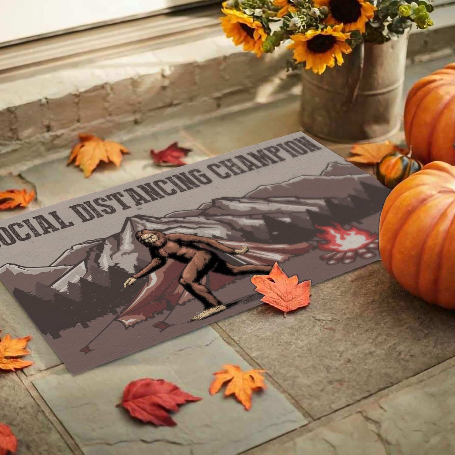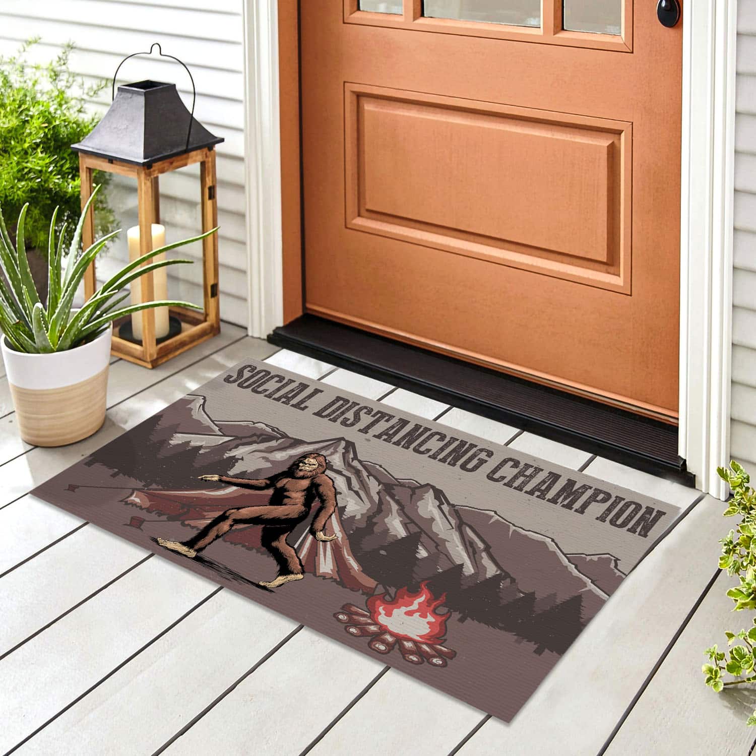 Let’s Shop Social Distancing Champion Bigfoot Sasquatch Outdoor Indoor Doormat – Funny Yeti Door Mat Entry Rug!