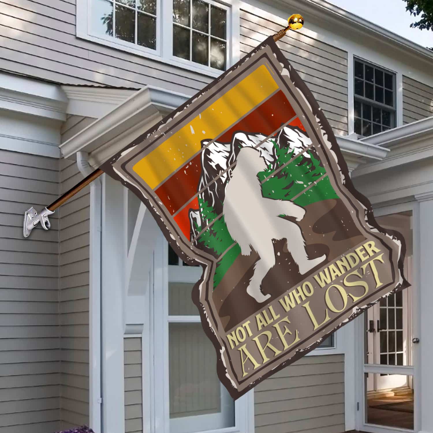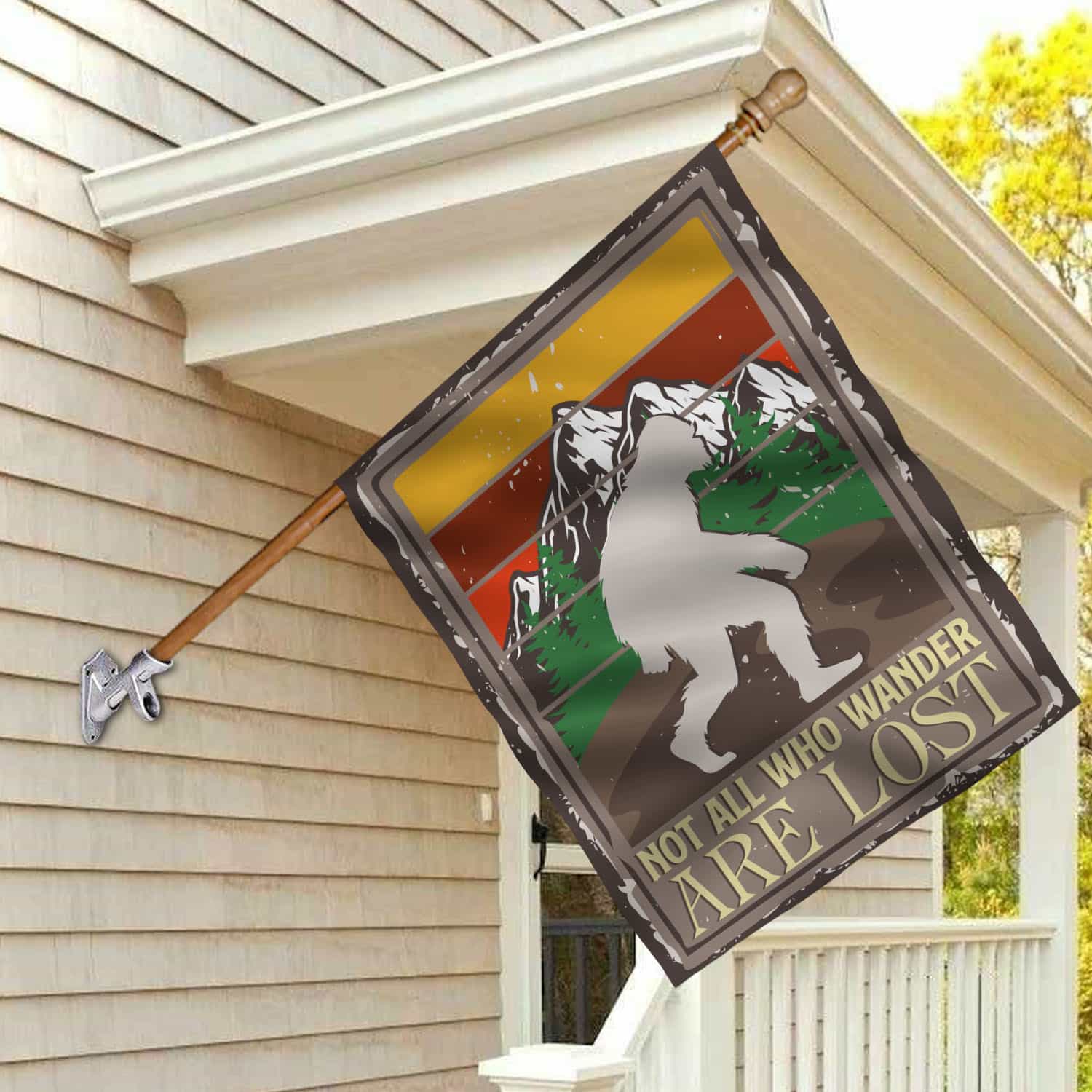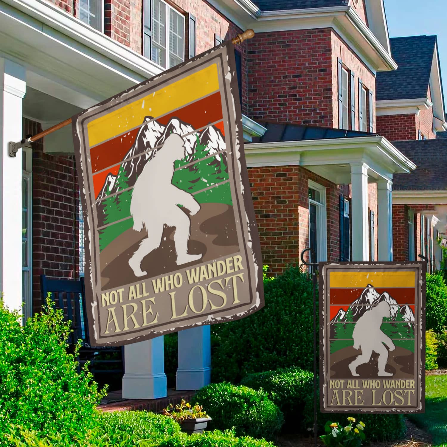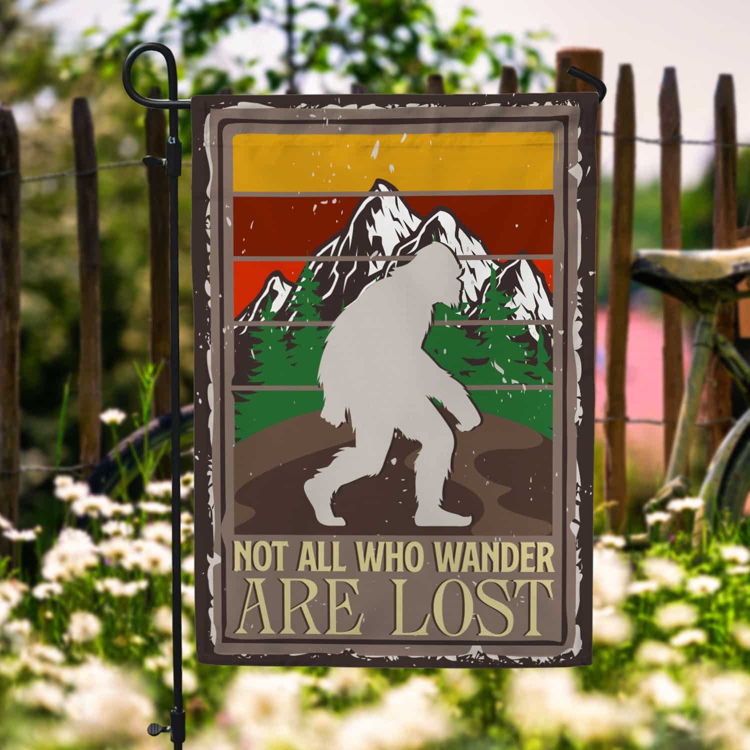 Let’s Shop Bigfoot Not All Who Wander Are Lost Sasquatch Outdoor Indoor Decorative Garden Flag – House Flag – Wall Flag!