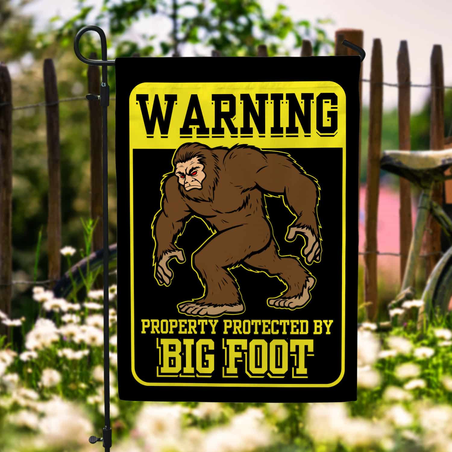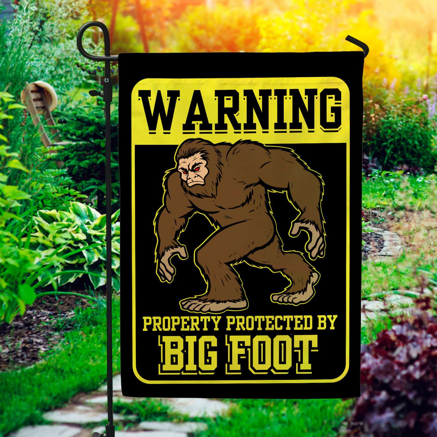 Let’s Shop Warning Property Protected by Big-Foot Sasquatch Outdoor Indoor Garden Flag – House Flag – Wall Flag!