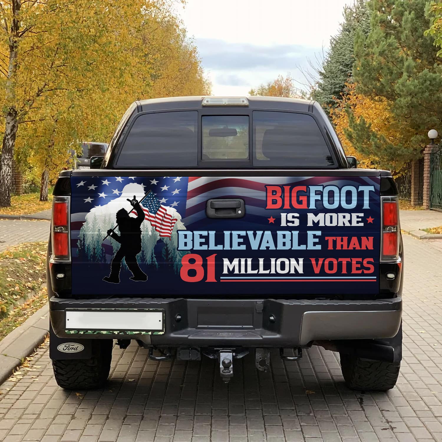 Let’s Shop Bigfoot Is More Believable Than 81 Million Votes Political Truck Tailgate Decal Sticker Wrap!