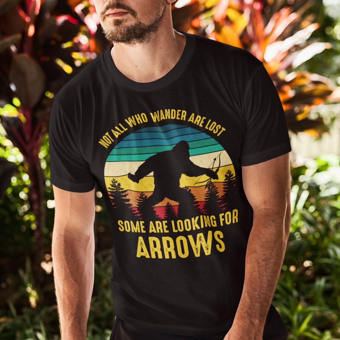 Not All Who Wander Are Lost Some Are Looking For Arrows Bigfoot Vintage Retro T-Shirt
