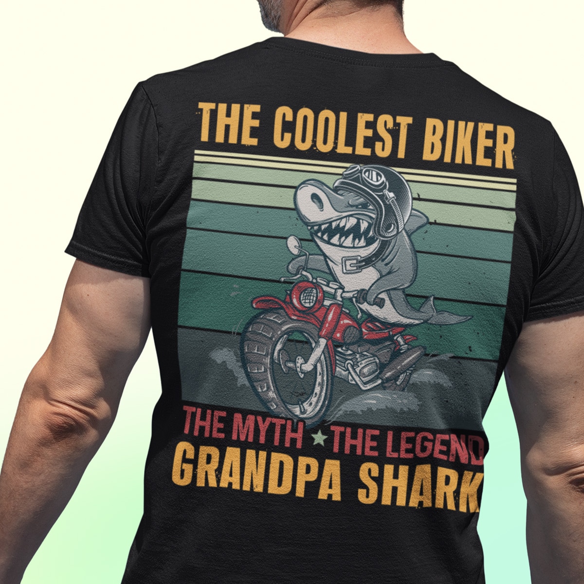 The Coolest Biker The Myth The Legend Grandpa Retro Vintage Shark Print On Back T-Shirt