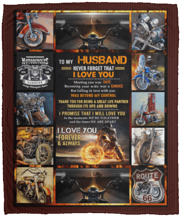 Shop To My Husband Never Forget That I Love You Biker Fleece Blanket – Premium Sherpa Blanket – Woven Blanket.
