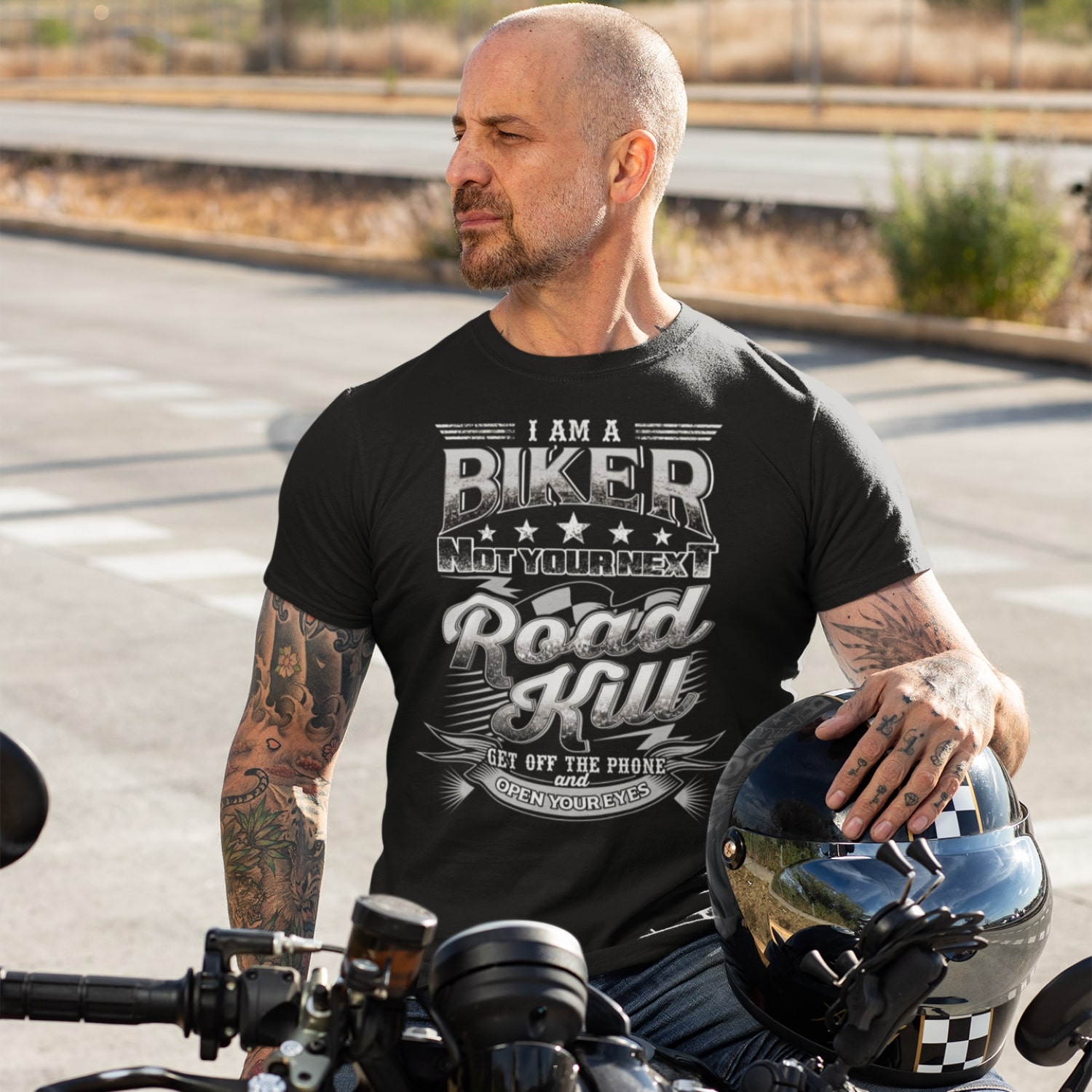 I’m a Biker Not Your Next Road Kill Get Off Your Phone and Open Your Eyes T-Shirt – Funny Biker Gifts