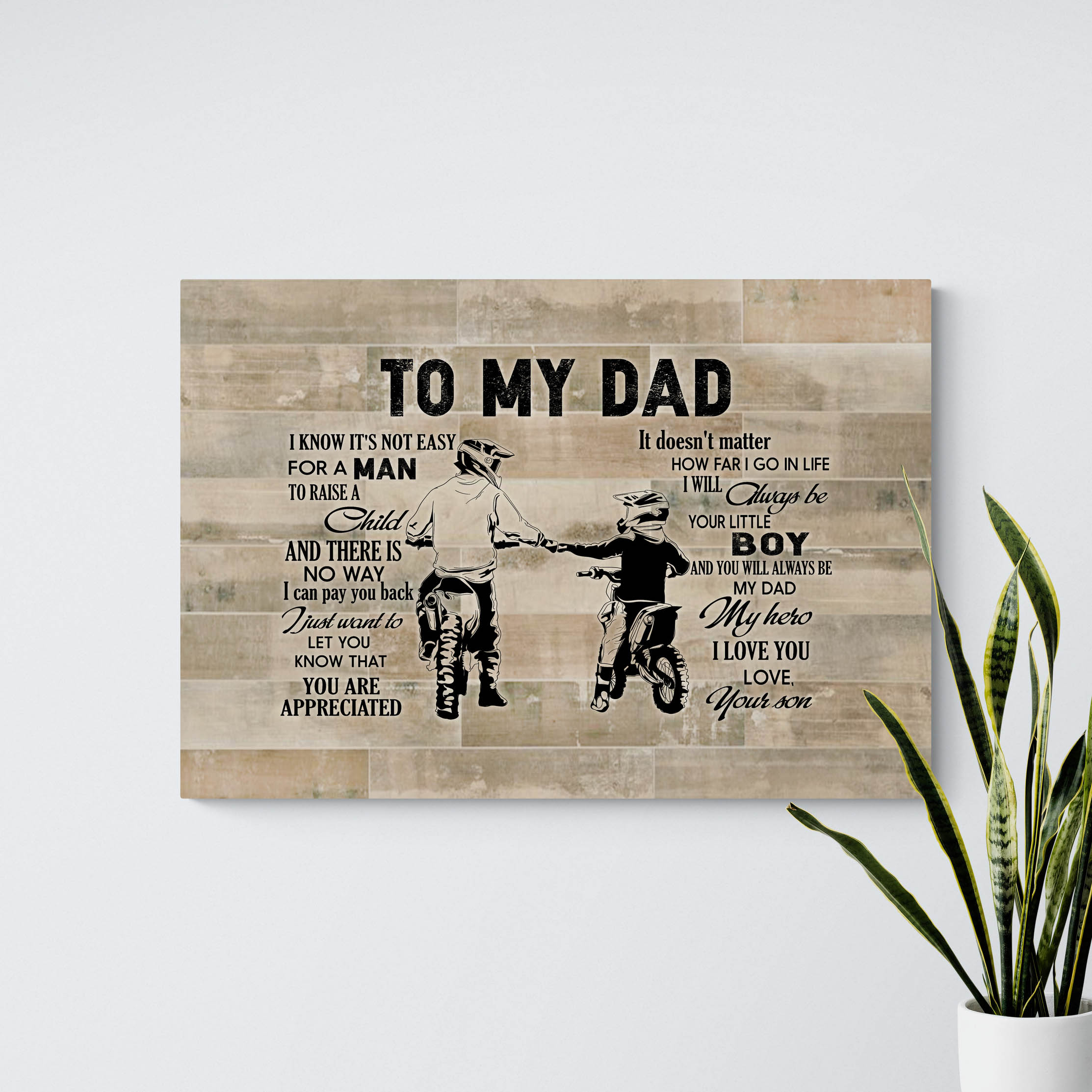 Biker Son To My Dad I Know It’s Not Easy For A Man To Raise A Child Framed Canvas – Unframed Poster