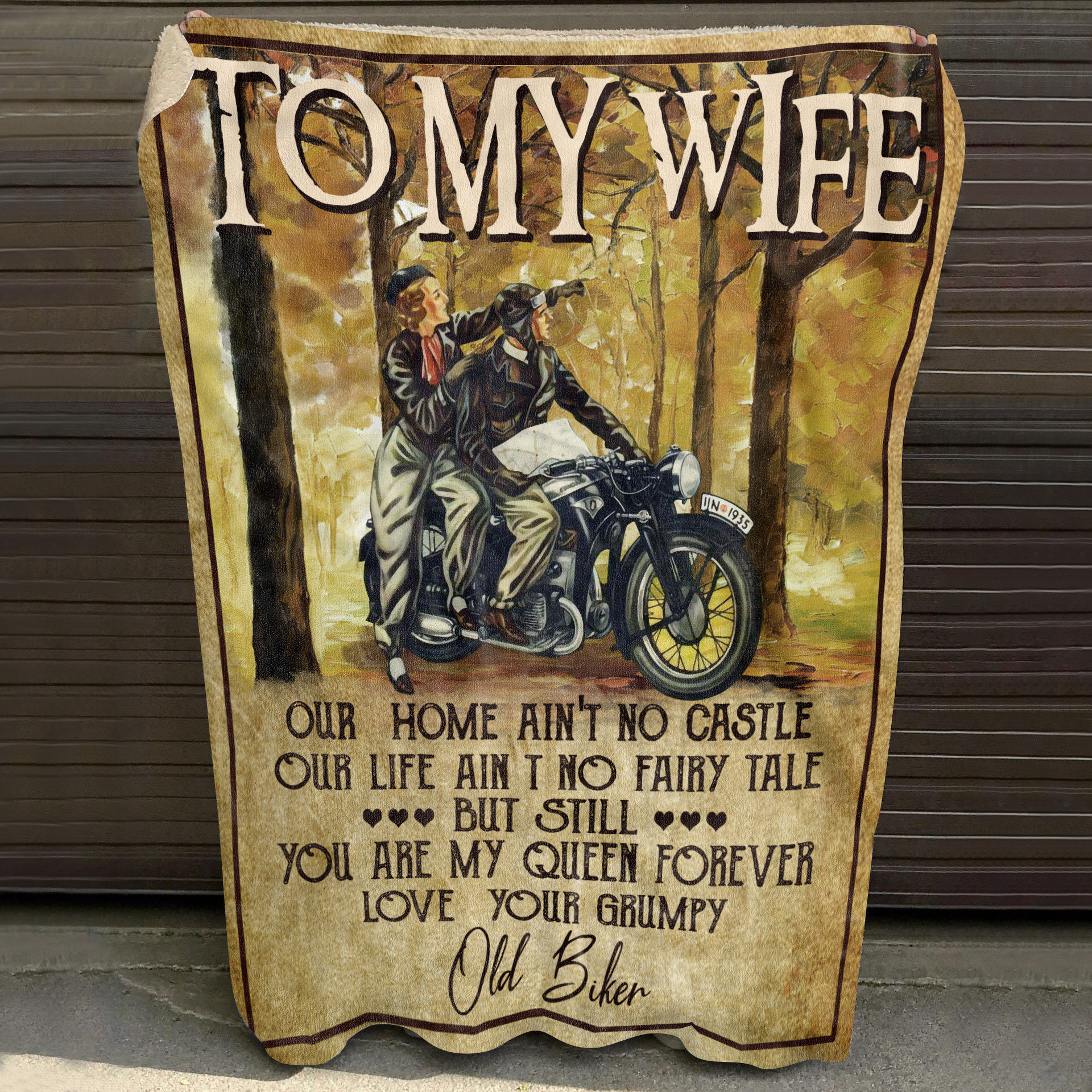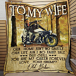 Let’s Shop Old Biker To My Wife Our Home Ain’t No Castle Our Life Ain’t No Fairy Tale Fleece Blanket-Mink Blanket!