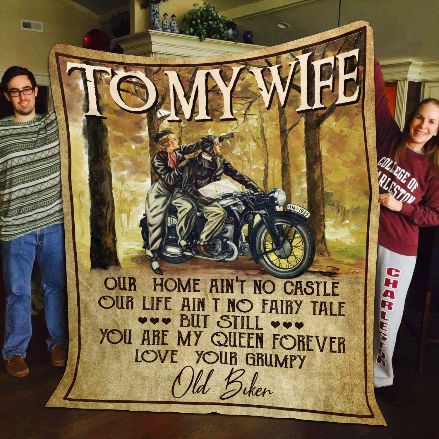 Are you spending too much time to find creative merchandise for you or suitable & special gifts for your mommy, your daddy, your son, your daughter, your children, your friends or someone you love? The struggle is over because we have various Old Biker to My Wife Our Home Ain’t No Castle Our Life Ain’t No Fairy Tale, Biker Wife Gift, Biker Wife Blanket, Biker Wife Gift from Husband, Biker Wife Tshirt for Women, Gifts for Motorcycle Lovers, Motorcycle Gifts for Dad, Biker Women Gift, Bike Lover Gifts which will make perfect presents for your beloveds. In order to make your present stand out, we have created lots of unique and awesome customized photo gifts & personalized designs.