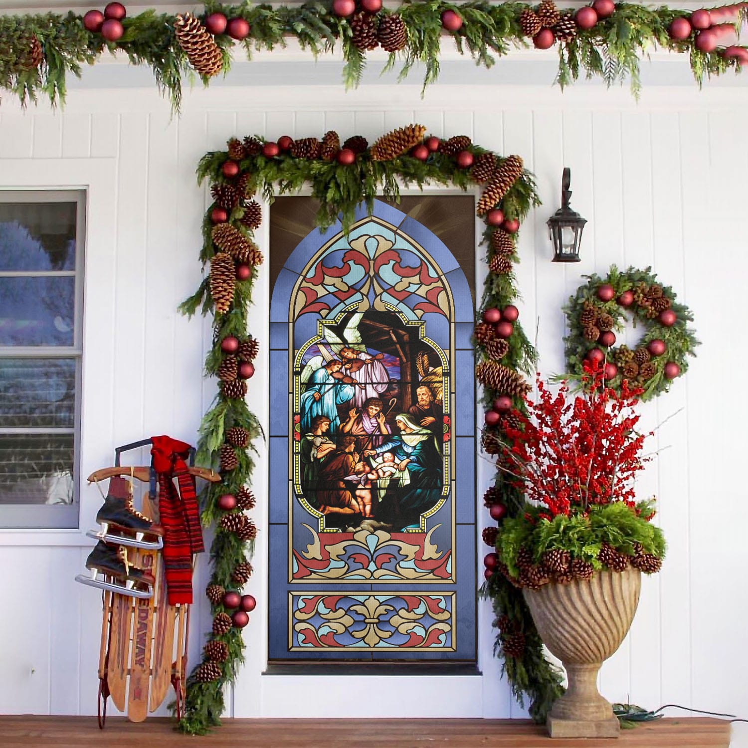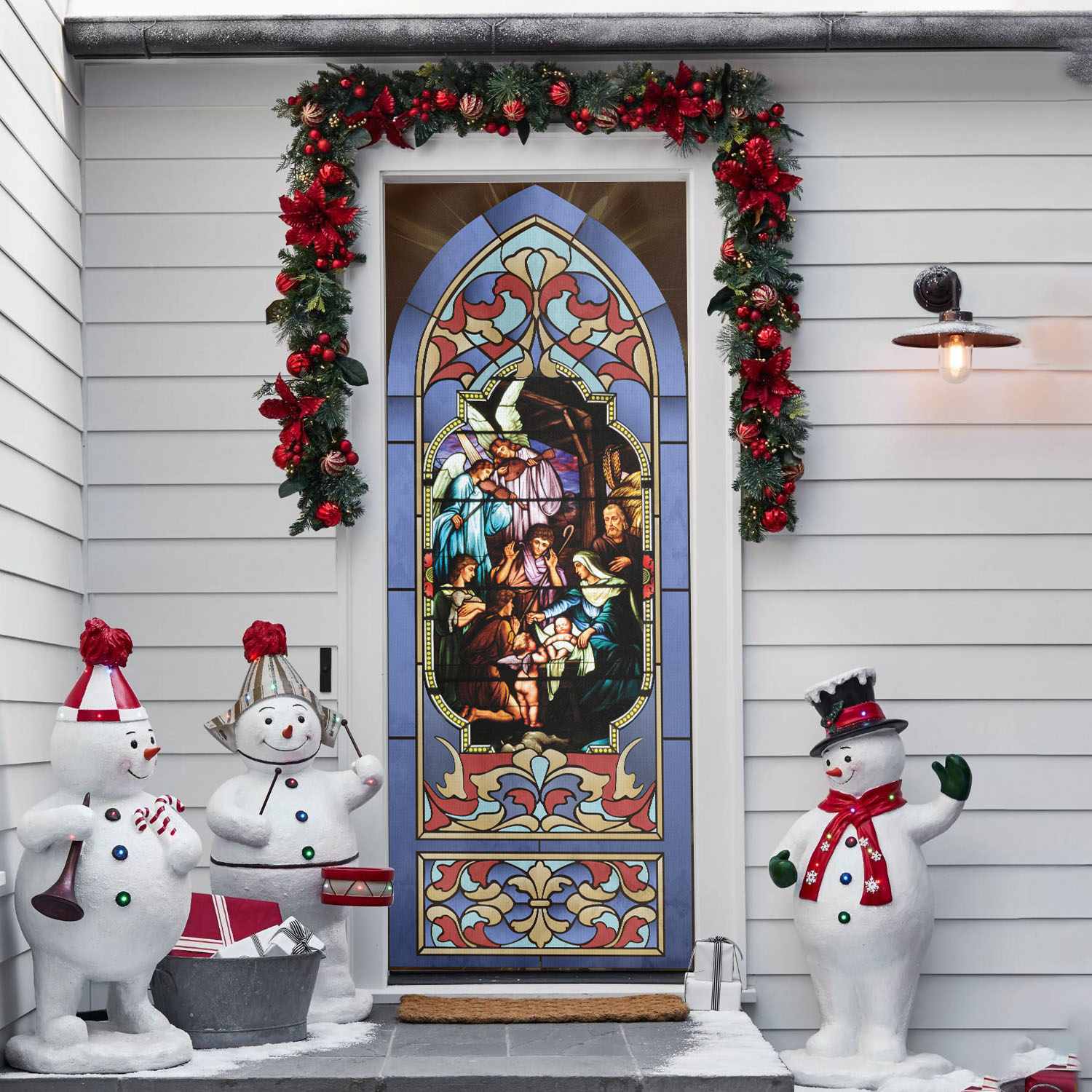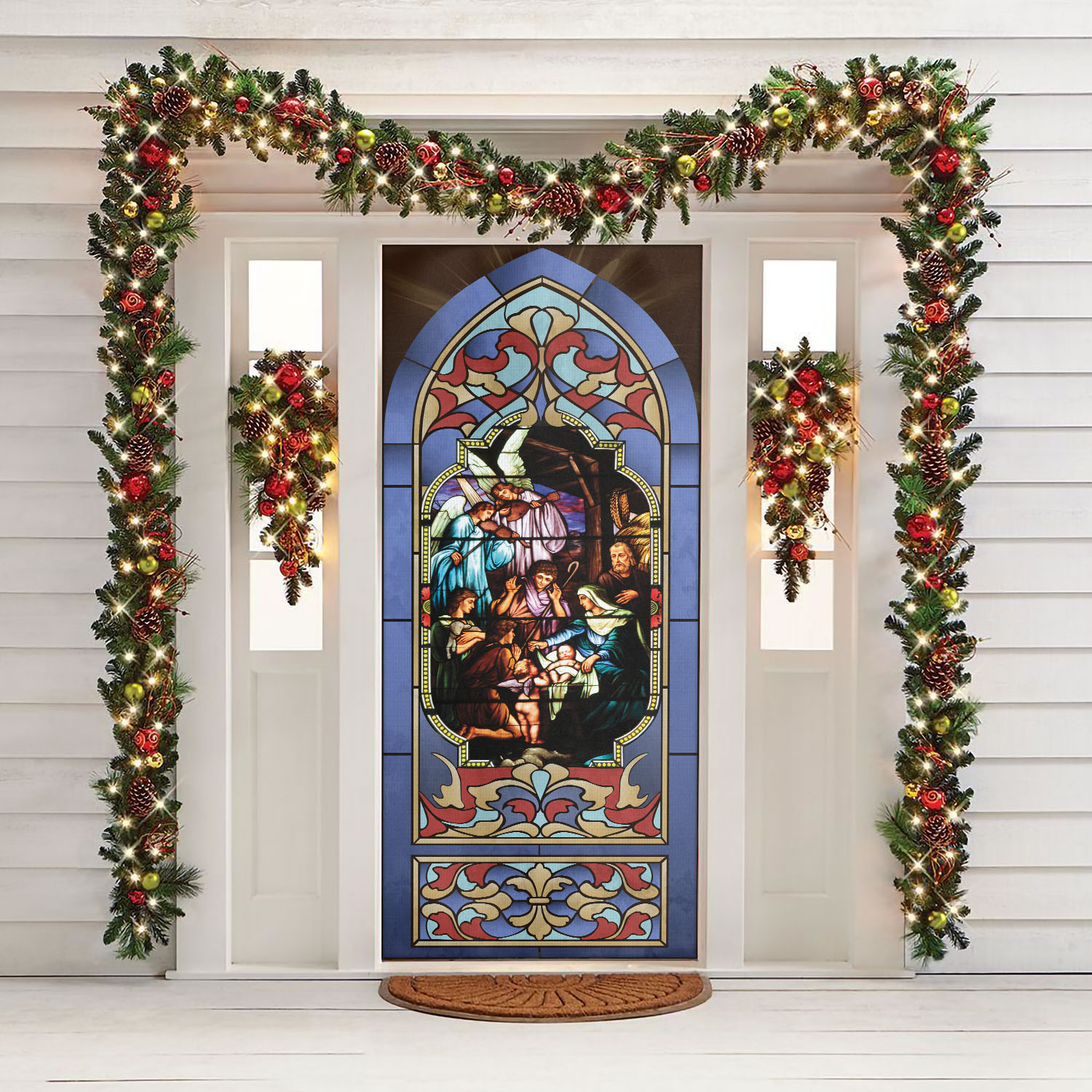 Let’s Shop The Nativity Scene Of Jesus Stained Glass Door Cover – The Birth Of Jesus Christ Scene Holy Family Christmas Door Cover!