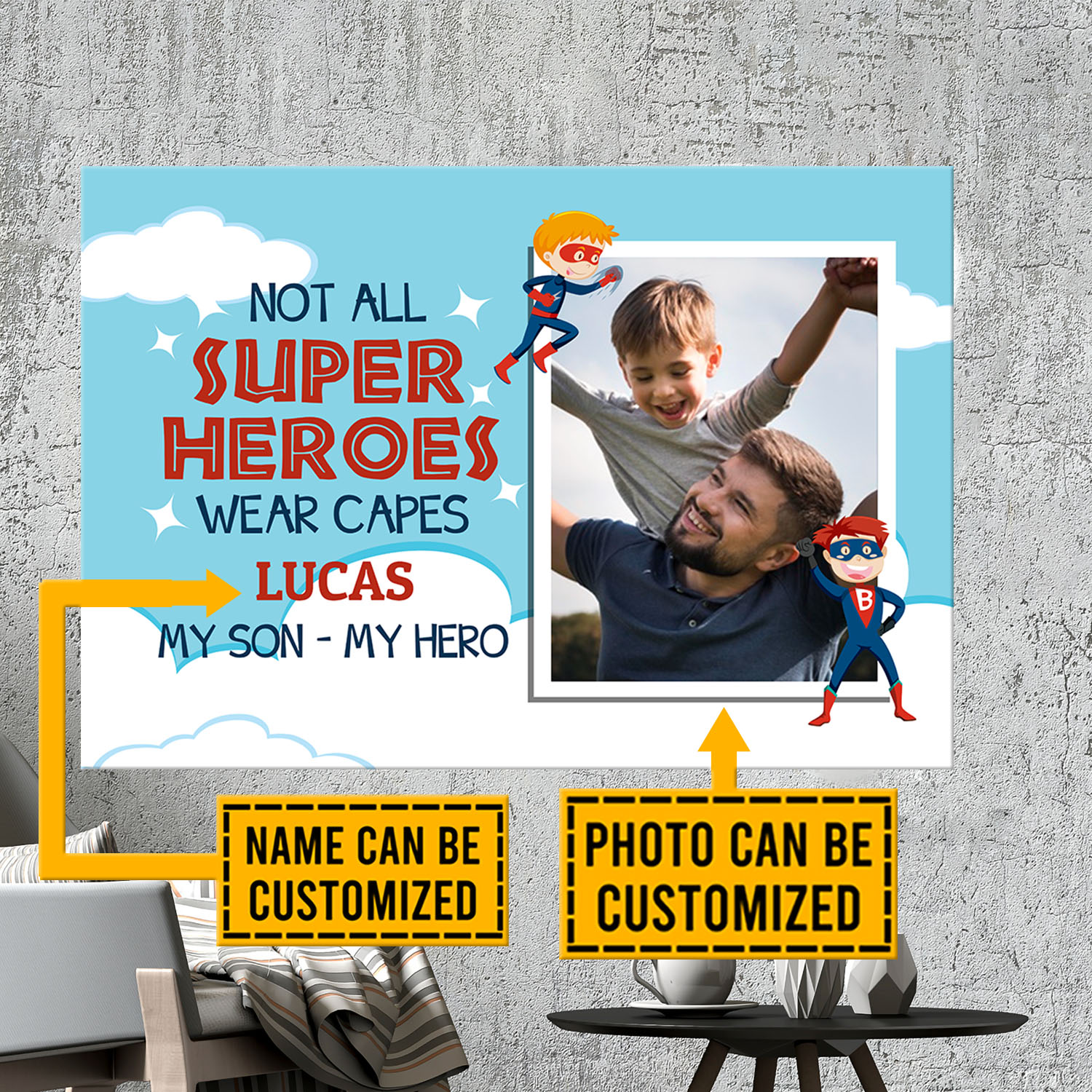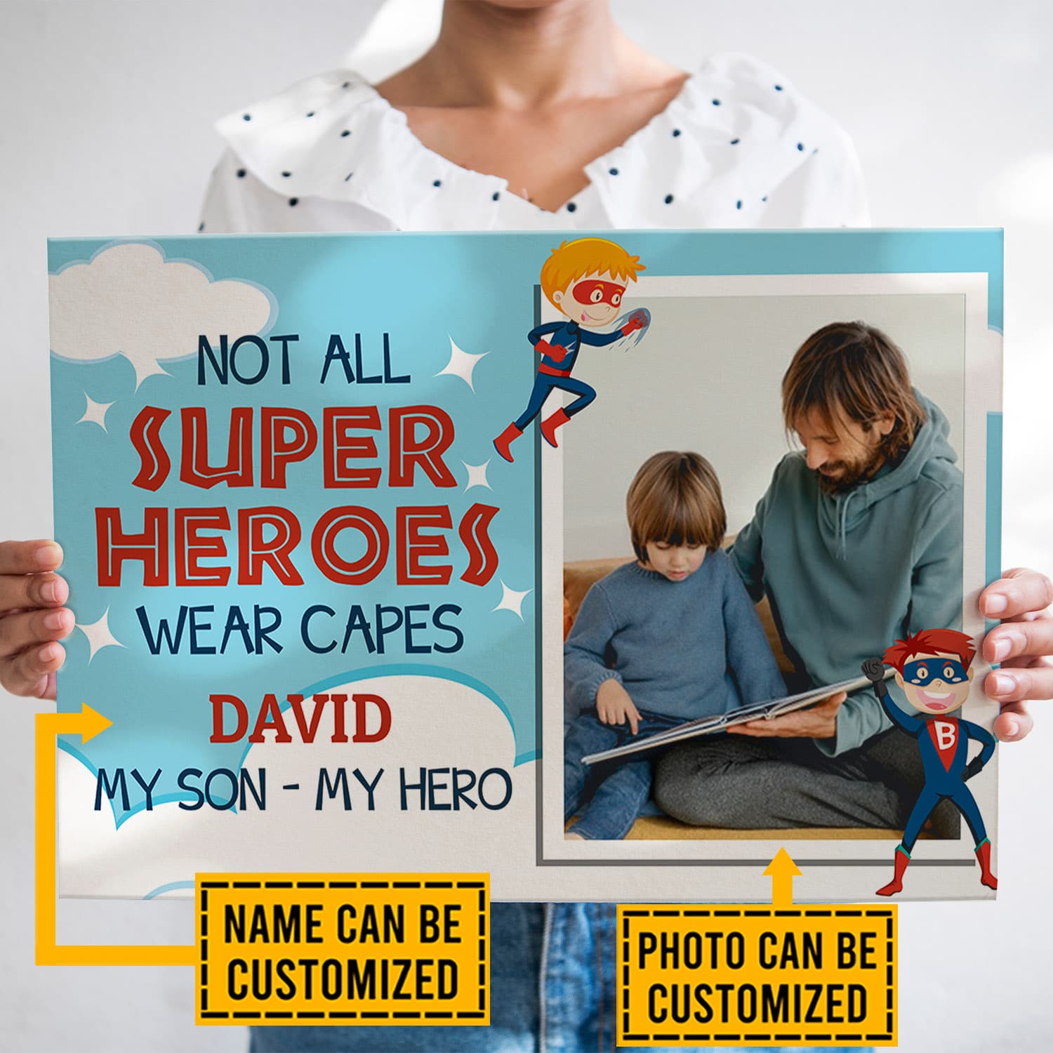 Let’s Shop Custom Photo Not All Super Heroes Wear Capes My Son My Hero Framed Canvas – Unframed Poster – My Son My Hero Gift!