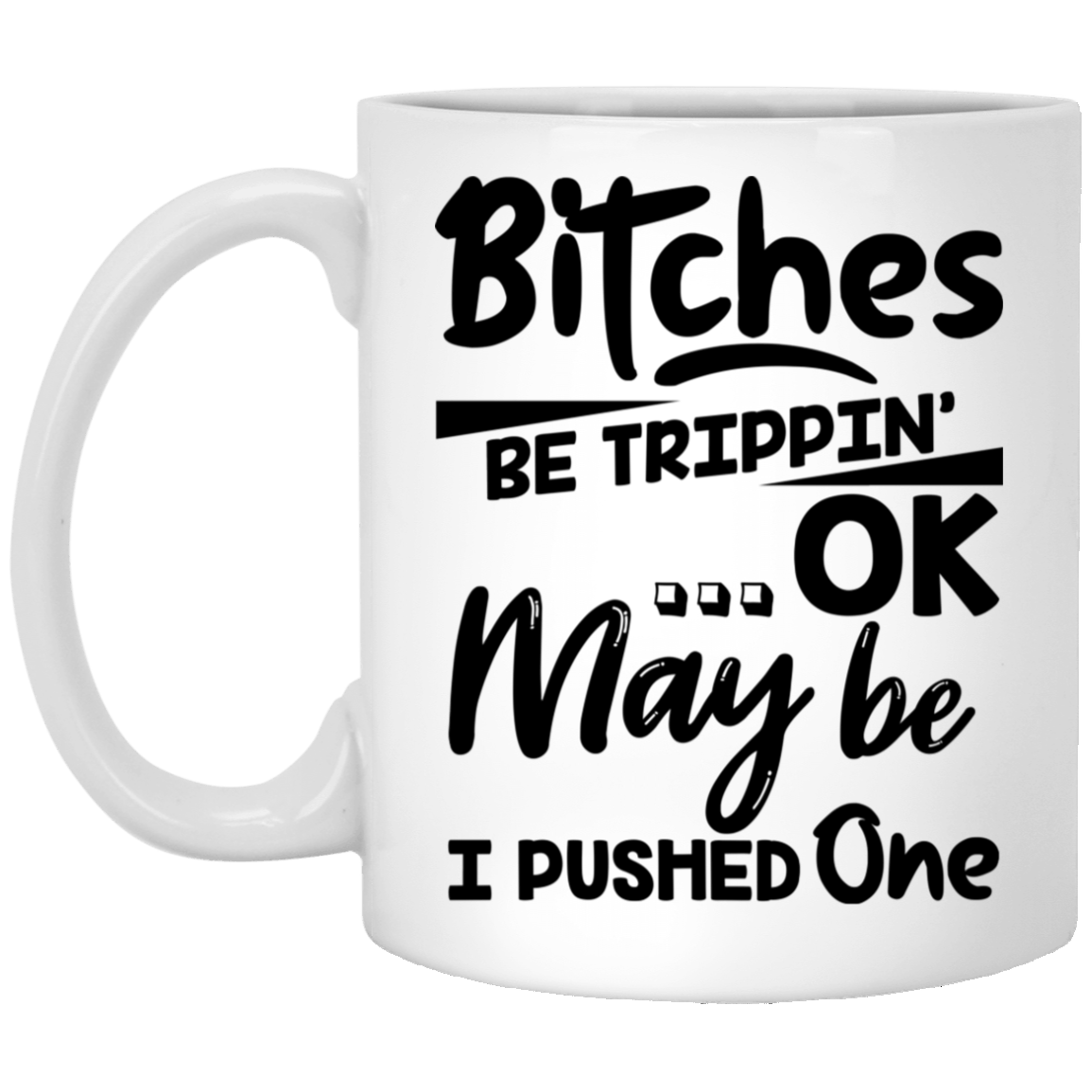 Bitches Be Trippin' Ok May Be I Pushed One Ceramic Coffee Mug - Beer Stein -Water Bottle - Color Changing Mug