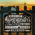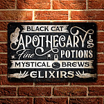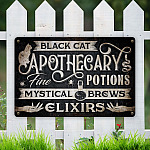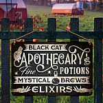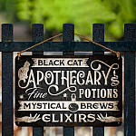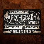 Let’s Shop Black Cat Apothecary Potions Charms Mysterical Brews Elixirs Metal Sign – Halloween Witch Sign Decor!