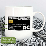 Let’s Shop Personalized Black Official Race Card Coffee Mug – Beer Stein – Water Bottle – Color Changing Mug!