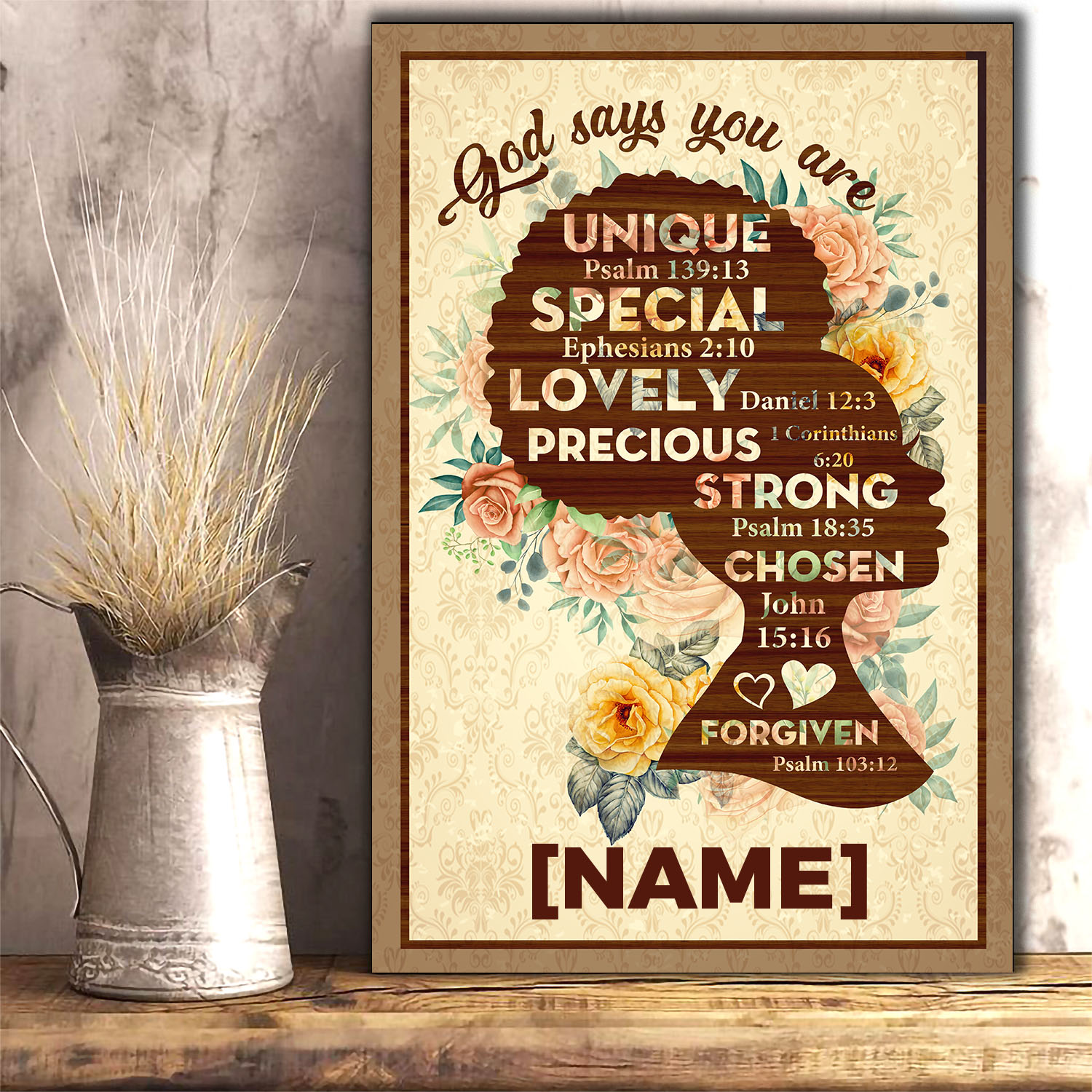 Let’s Shop Personalized God Says You Are Unique Special Lovely Precious Strong Framed Canvas – Unframed Poster!