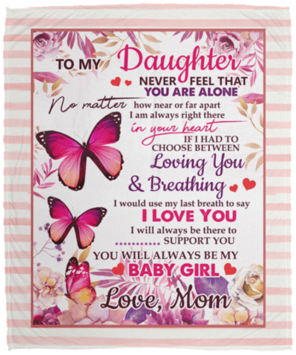 Shop To My Daughter Never Feel That You Are Alone No Matter How near Butterfly Fleece Blanket – Premium Sherpa Blanket.