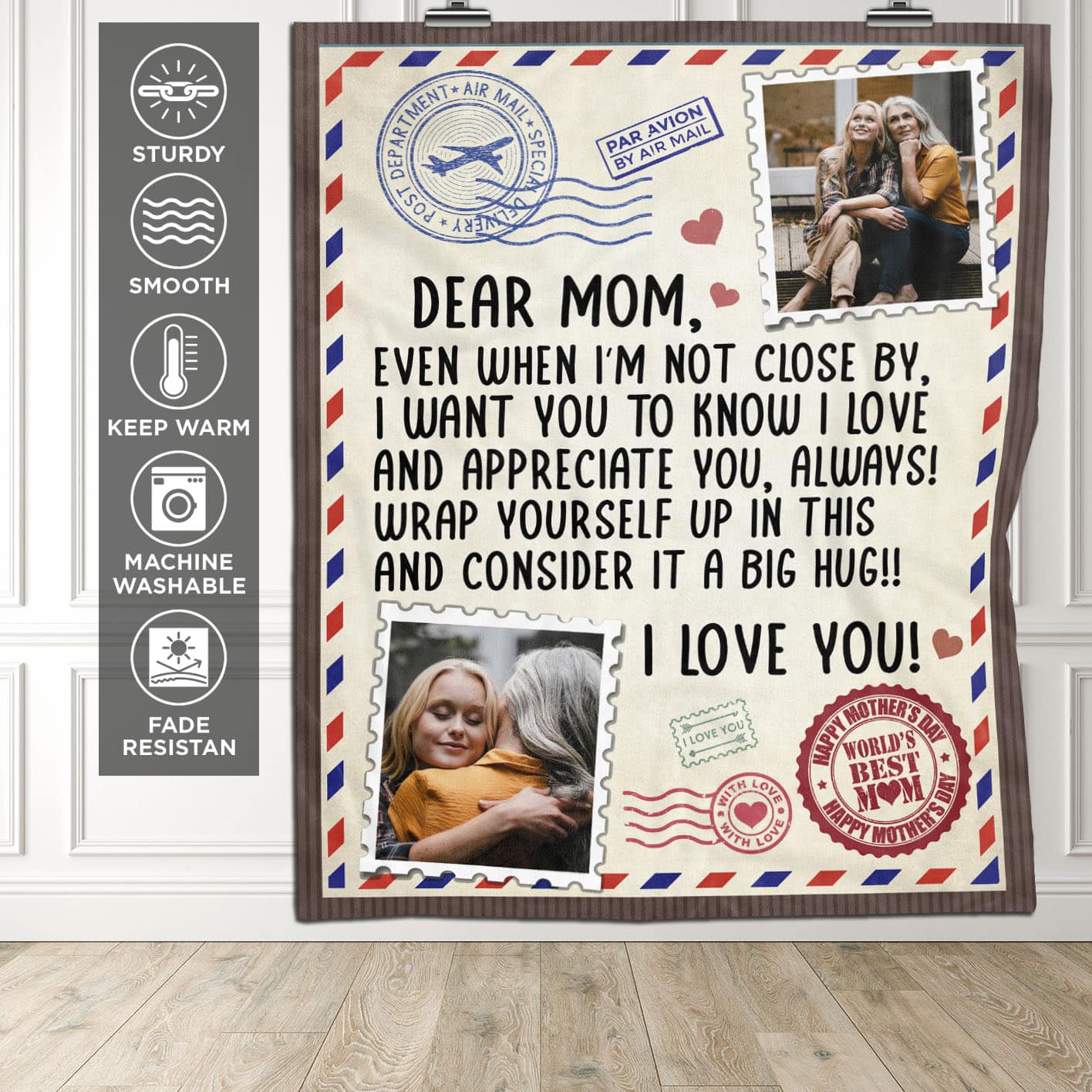 Let’s Shop Personalized Photo Mail Mom Blanket – Custom Gifts for Mom – Blanket to My Mom Gift from Daughter Son!