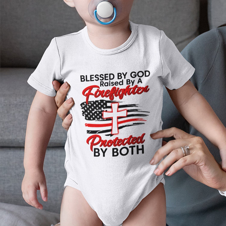 Let’s Shop Blessed By God Raised By A Firefighter Protected By Both Baby Onesie – Baby Infant Bodysuit!