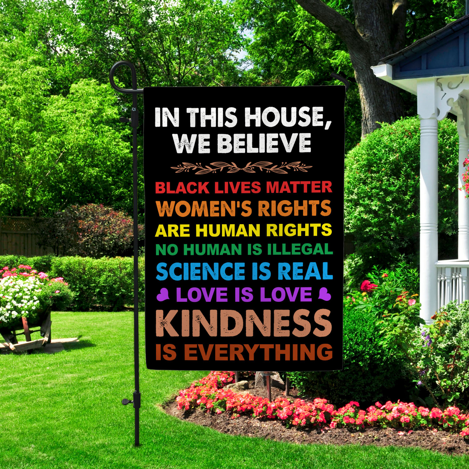Let’s Shop In This House We Believe Black Lives Matter Women’s Rights Are Human Rights Outdoor House Flag – Home Garden Flag!