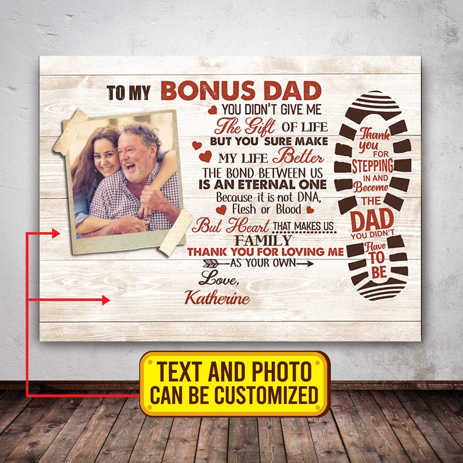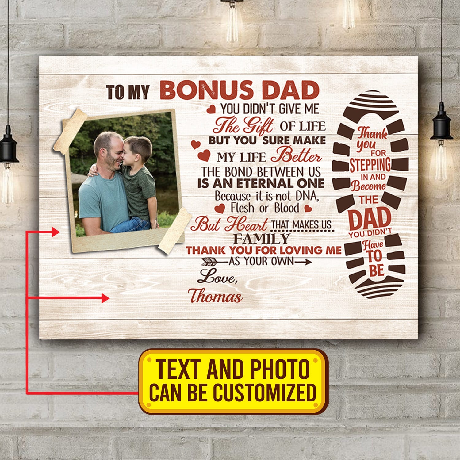 Are you spending too much time to find creative merchandise for you or suitable & special gifts for your mommy, your daddy, your son, your daughter, your children, your friends or someone you love? The struggle is over because we have various Bonus Dad Photo Frame, Step Dad Photo Frame, Bonus Dad Canvas, Step Dad Wall Canvas, Step Dad Canvas, Step Dad Poster, to My Step Dad Poster, Step Dad Wall Art, Step Dad Wall Decor, Bonus Dad Poster, Bonus Dad Gifts Personalized, Personalized Bonus Dad Day Gifts for Dad which will make perfect presents for your beloveds. In order to make your present stand out, we have created lots of unique and awesome customized photo gifts & personalized designs.