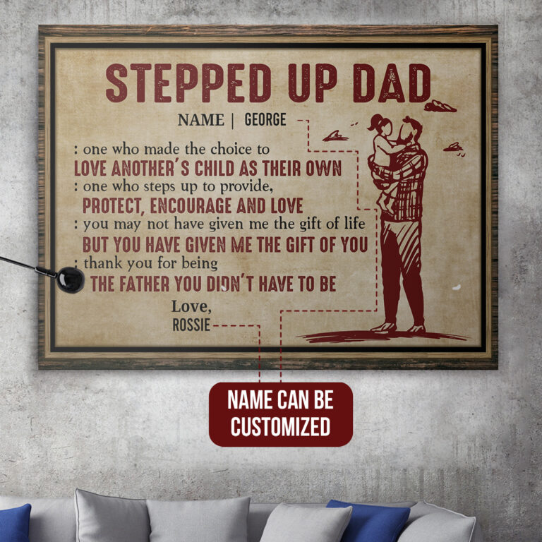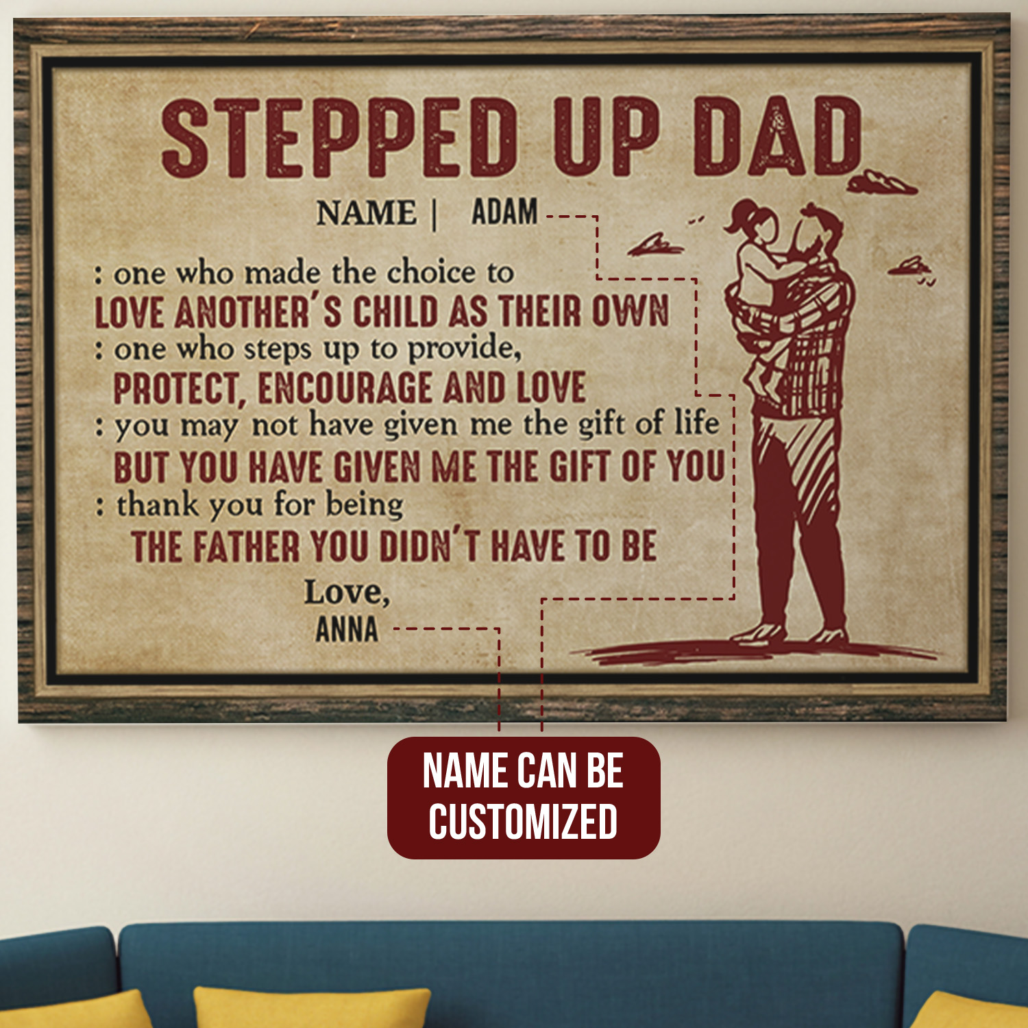 Are you spending too much time to find creative merchandise for you or suitable & special gifts for your mommy, your daddy, your son, your daughter, your children, your friends or someone you love? The struggle is over because we have various Step Dad Canvas, Step Dad Poster, To My Bonus Dad Canvas Poster, Stepped Up Dad Canvas Poster, Personalized Step Dad Gifts, Step Dad Gift from Daughter, Personalized Step Dad Fathers Day Gifts, Step Dad Gifts, Bonus Dad Canvas Poster, Personalized Bonus Dad Canvas, Stepped Up Dad Personalized Canvas, Step Dad Gifts for Fathers Day, Personalized Bonus Dad Gifts, Bonus Dad Gifts, Bonus Dad Gifts from Daughter which will make perfect presents for your beloveds. In order to make your present stand out, we have created lots of unique and awesome customized photo gifts & personalized designs.