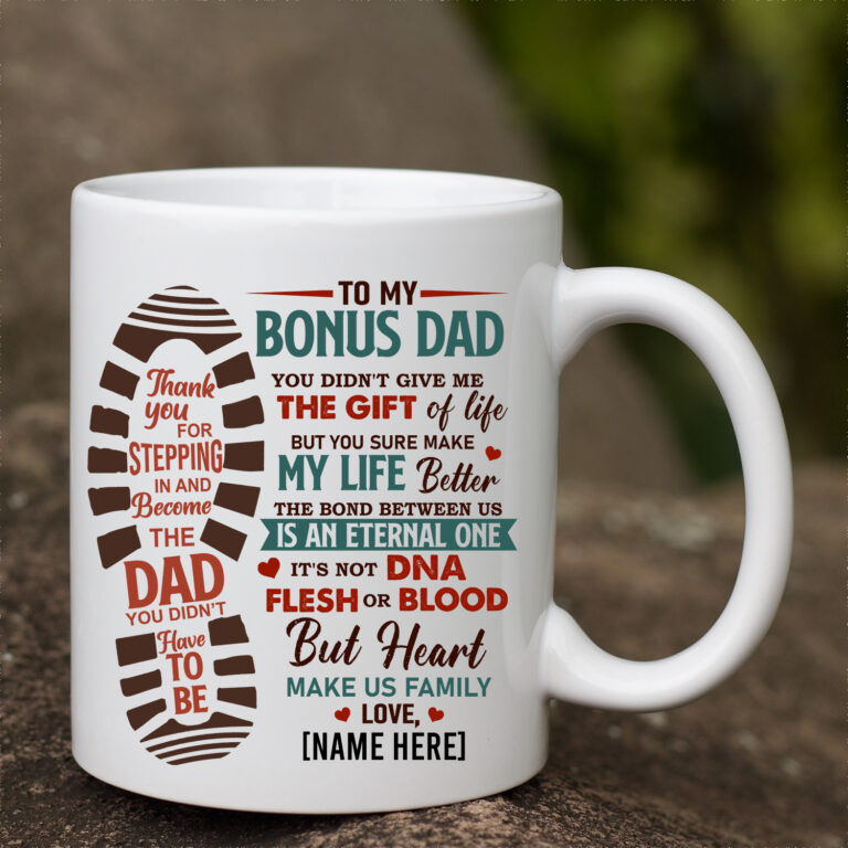 Are you spending too much time to find creative merchandise for you or suitable & special gifts for your mommy, your daddy, your son, your daughter, your children, your friends or someone you love? The struggle is over because we have various Bonus Dad Mug, Bonus Dad Coffee Mug, Bonus Dad Travel Mug, to My Bonus Dad Mug, Step Dad Mug, Step Dad Coffee Mug, Bonus Dad Gift, Bonus Dad Gifts from Daughter which will make perfect presents for your beloveds. In order to make your present stand out, we have created lots of unique and awesome customized photo gifts & personalized designs.