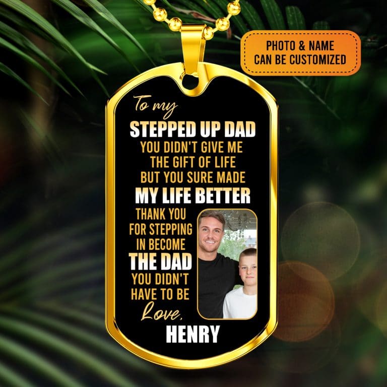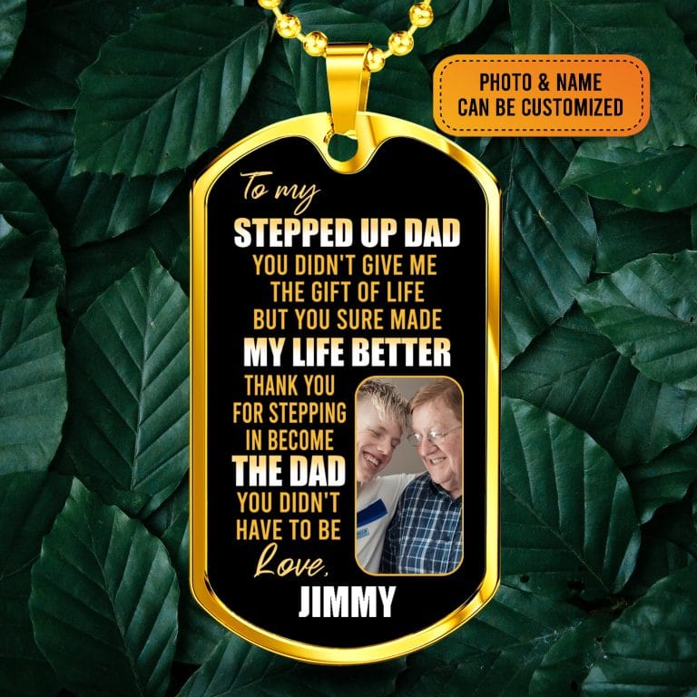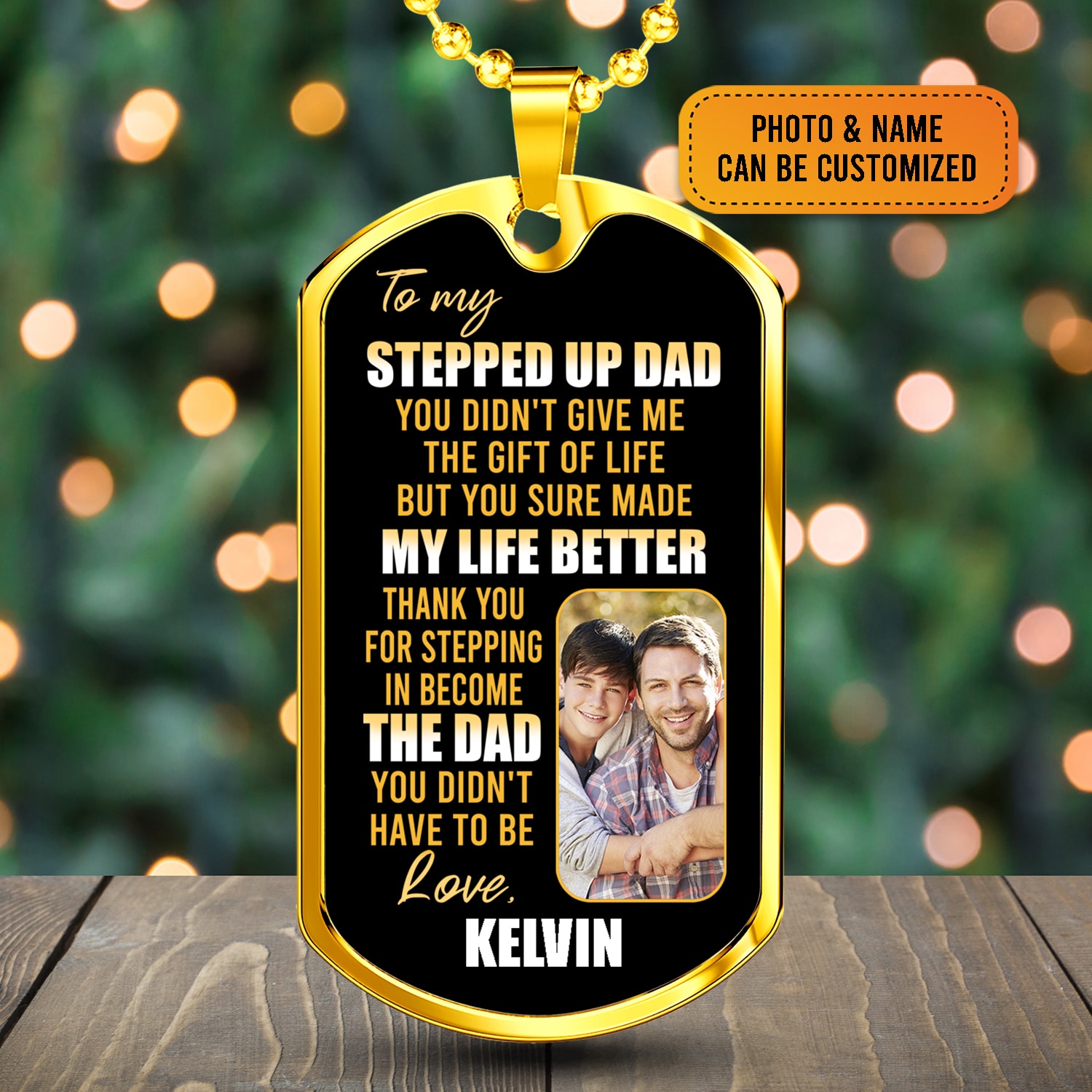 Let’s Shop Personalized Photo To My Stepped Up Dad Thank You For Stepping Dog Tag Pendant Necklace!