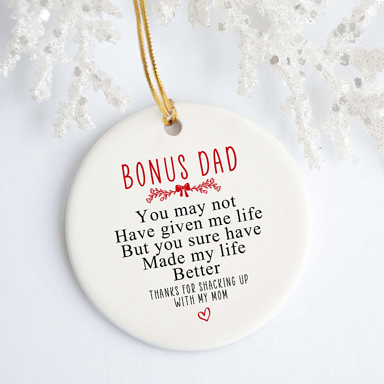 Are you spending too much time to find creative merchandise for you or suitable & special gifts for your mommy, your daddy, your son, your daughter, your children, your friends or someone you love? The struggle is over because we have various Bonus Dad Ornament, Bonus Dad Christmas Ornament, Bonus Dad Christmas Gifts, Bonus Dad Gifts from Daughter, Bonus Dad Gifts from Son, Bonus Dad Coffee Mug, Bonus Dad Shirts for Men, Bonus Dad and Daughter Gifts which will make perfect presents for your beloveds. In order to make your present stand out, we have created lots of unique and awesome customized photo gifts & personalized designs.