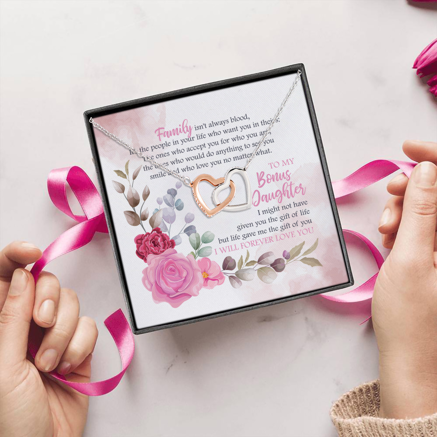 Let’s Shop To My Bonus Daughter I Might Not Have Given You the Gift of Life Joined Interlocking Hearts Pendant Necklace!