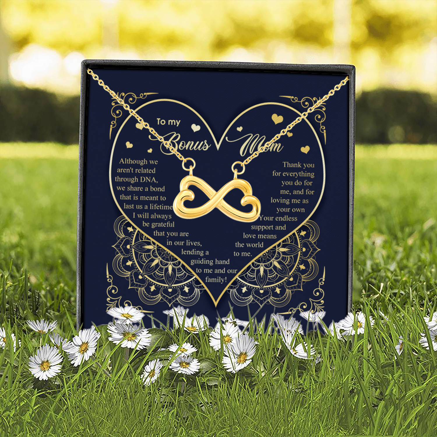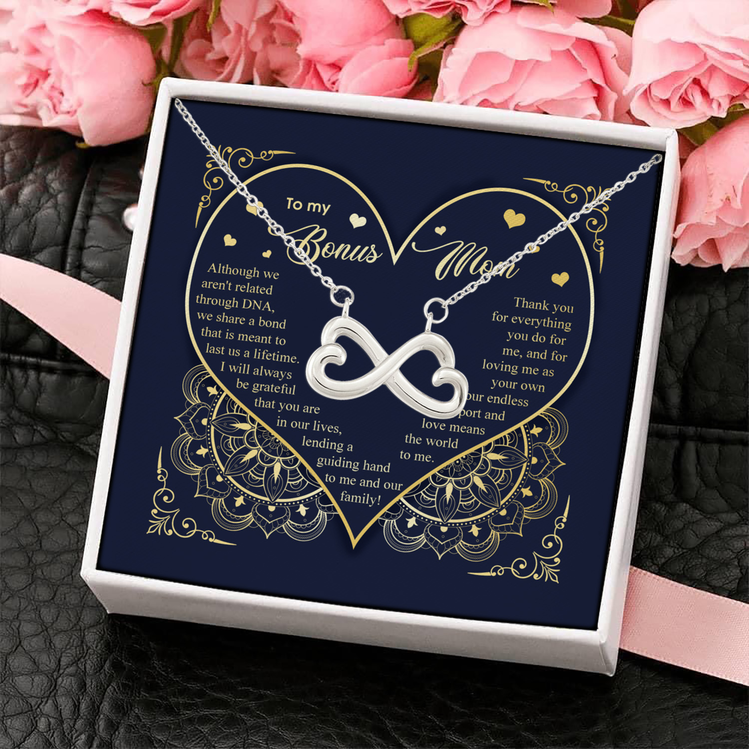 Let’s Shop To My Bonus Mom Although We Aren’t Related Through D N A – Bonus Mom Gifts – Infinity Heart Pendant Necklace!