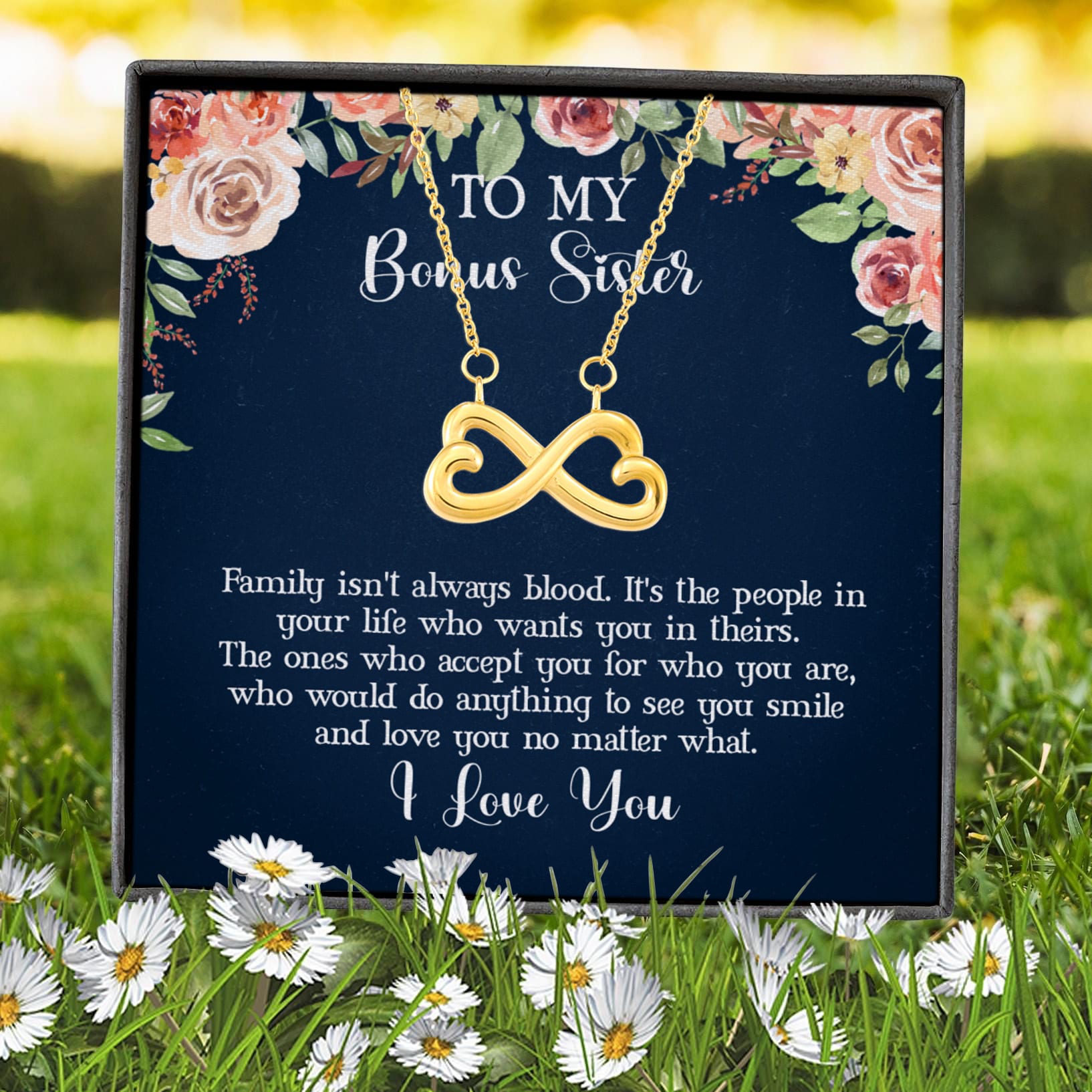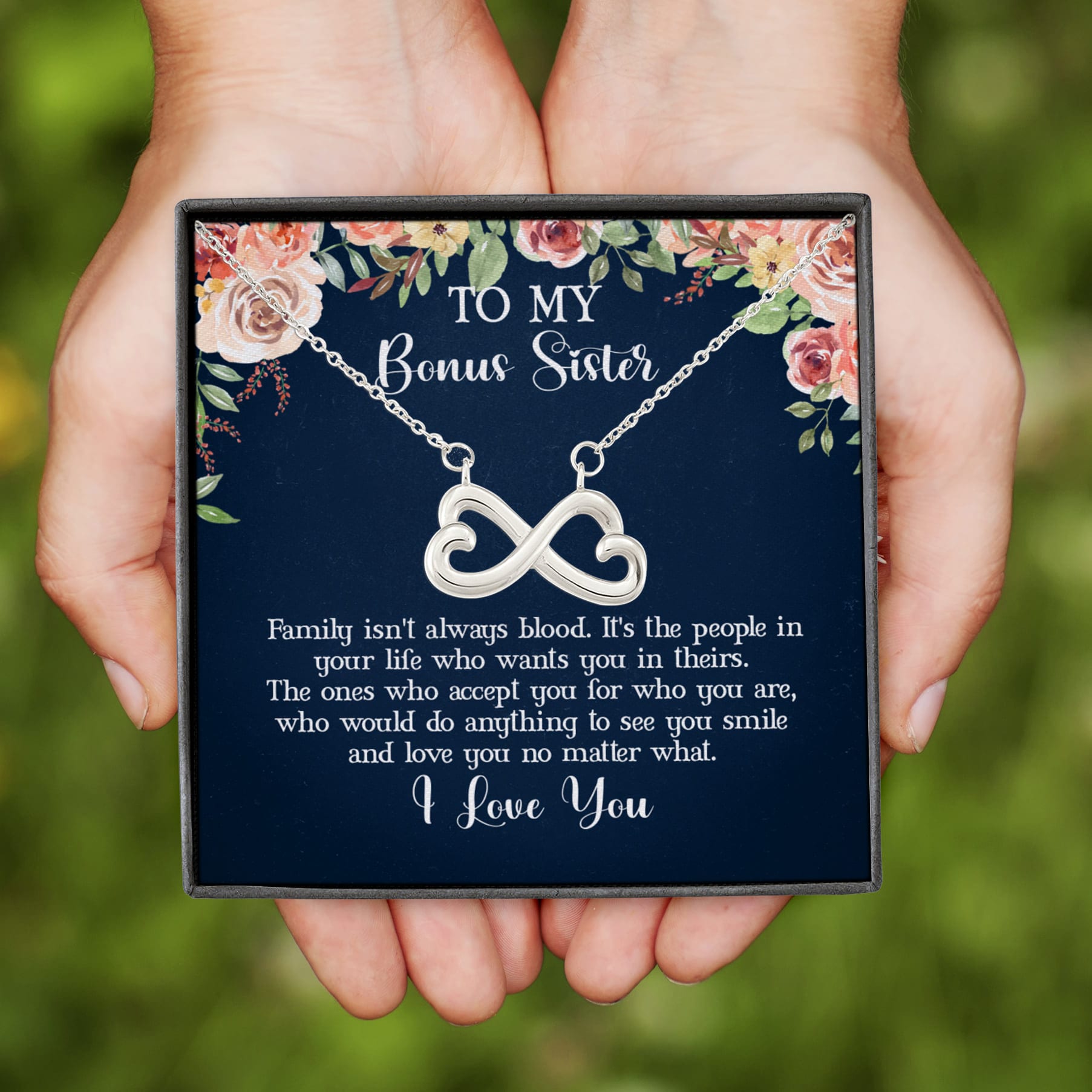 Let’s Shop To My Bonus Sister Family Isn’t Always Blood Infinity Heart Pendant Necklace – Bonus Sister Gifts!