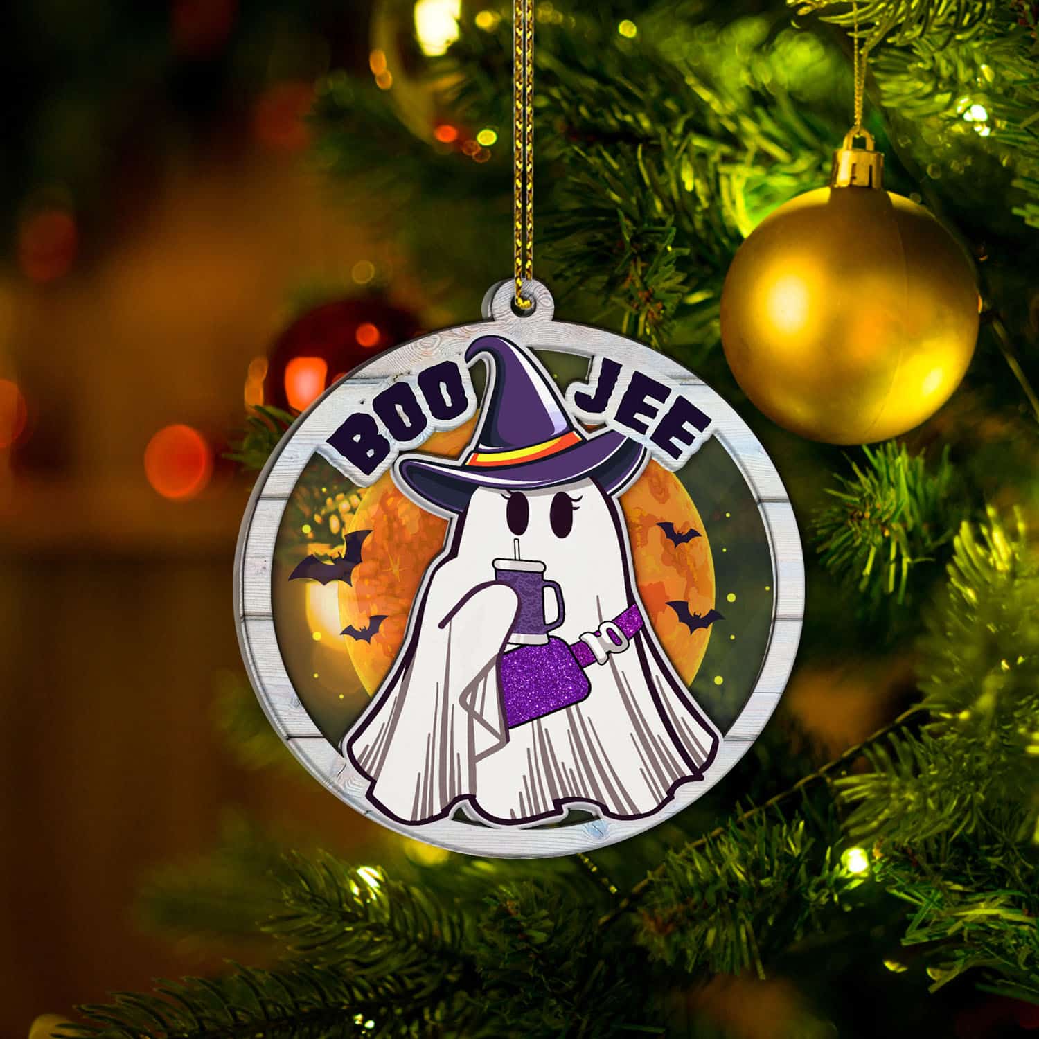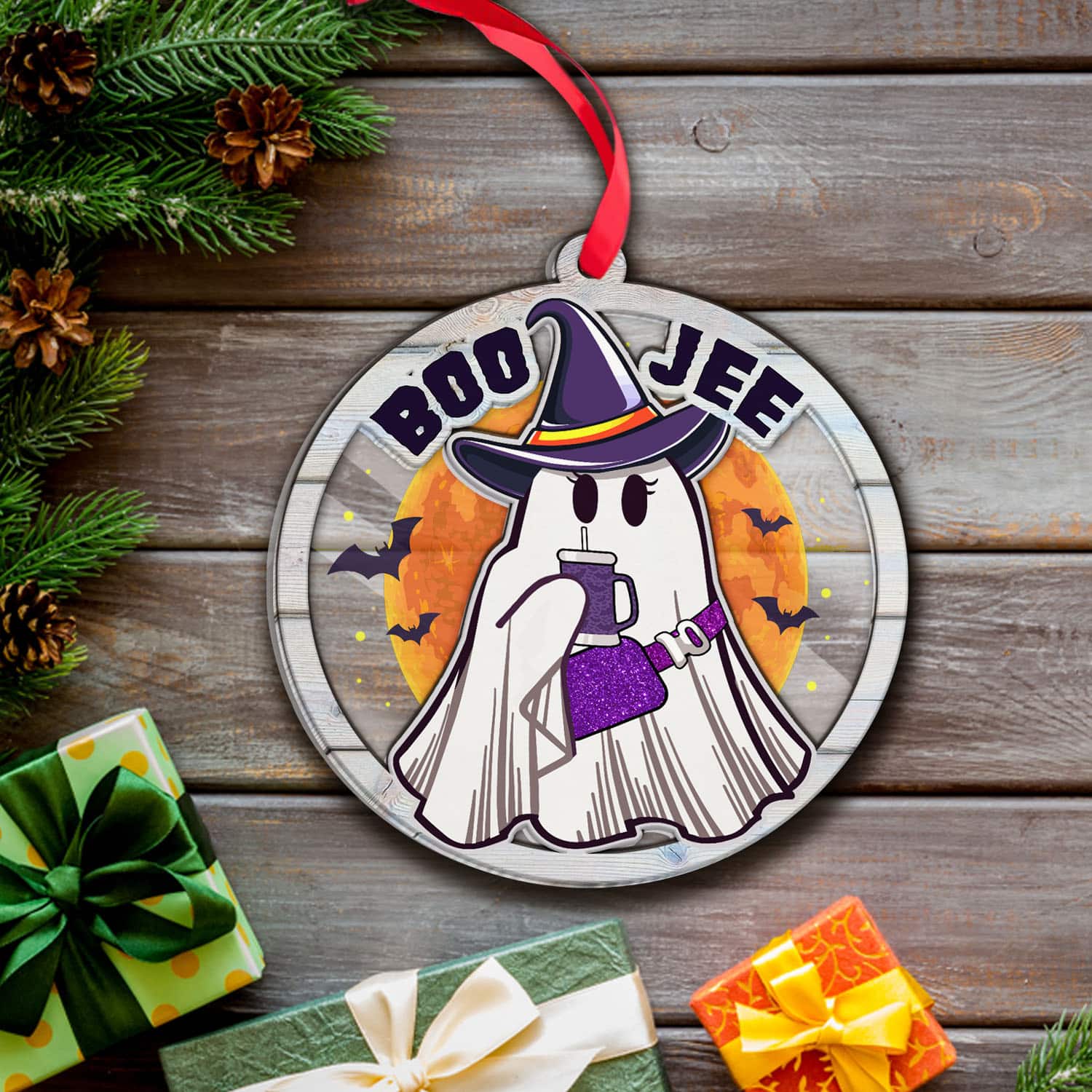 Let’s Shop Boo Jee Boujee Funny Cute Boo Ghost Halloween Acrylic Wood Ornament Keepsake – Boo Ghost Halloween Decorations!