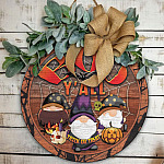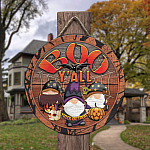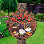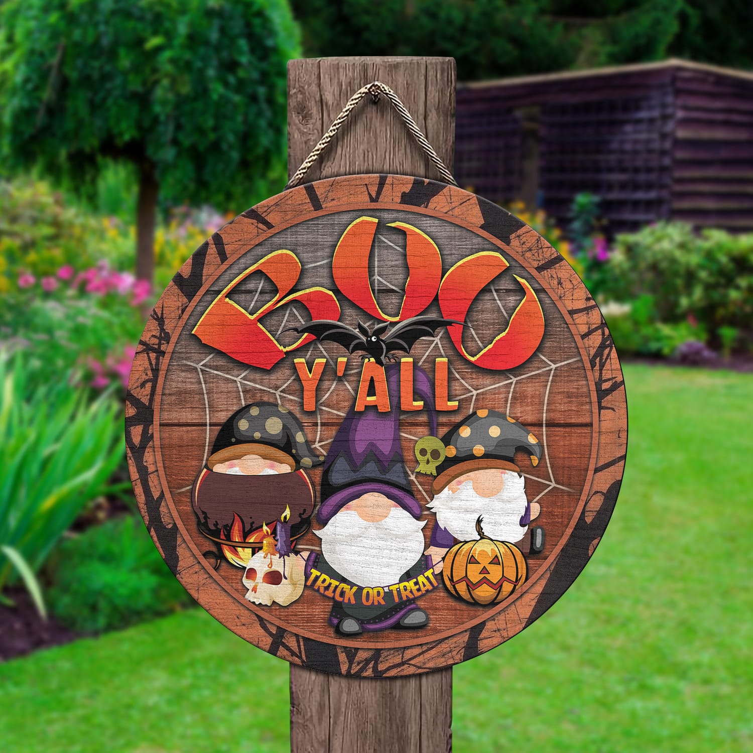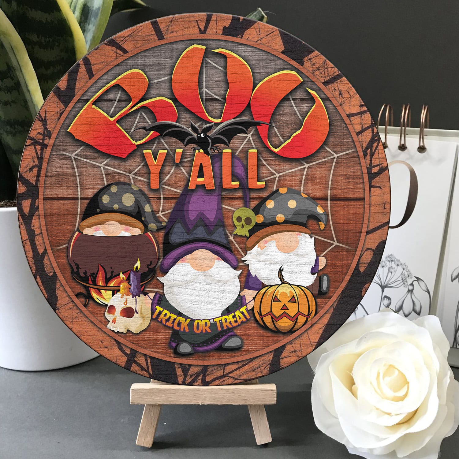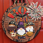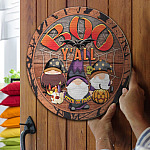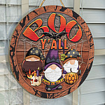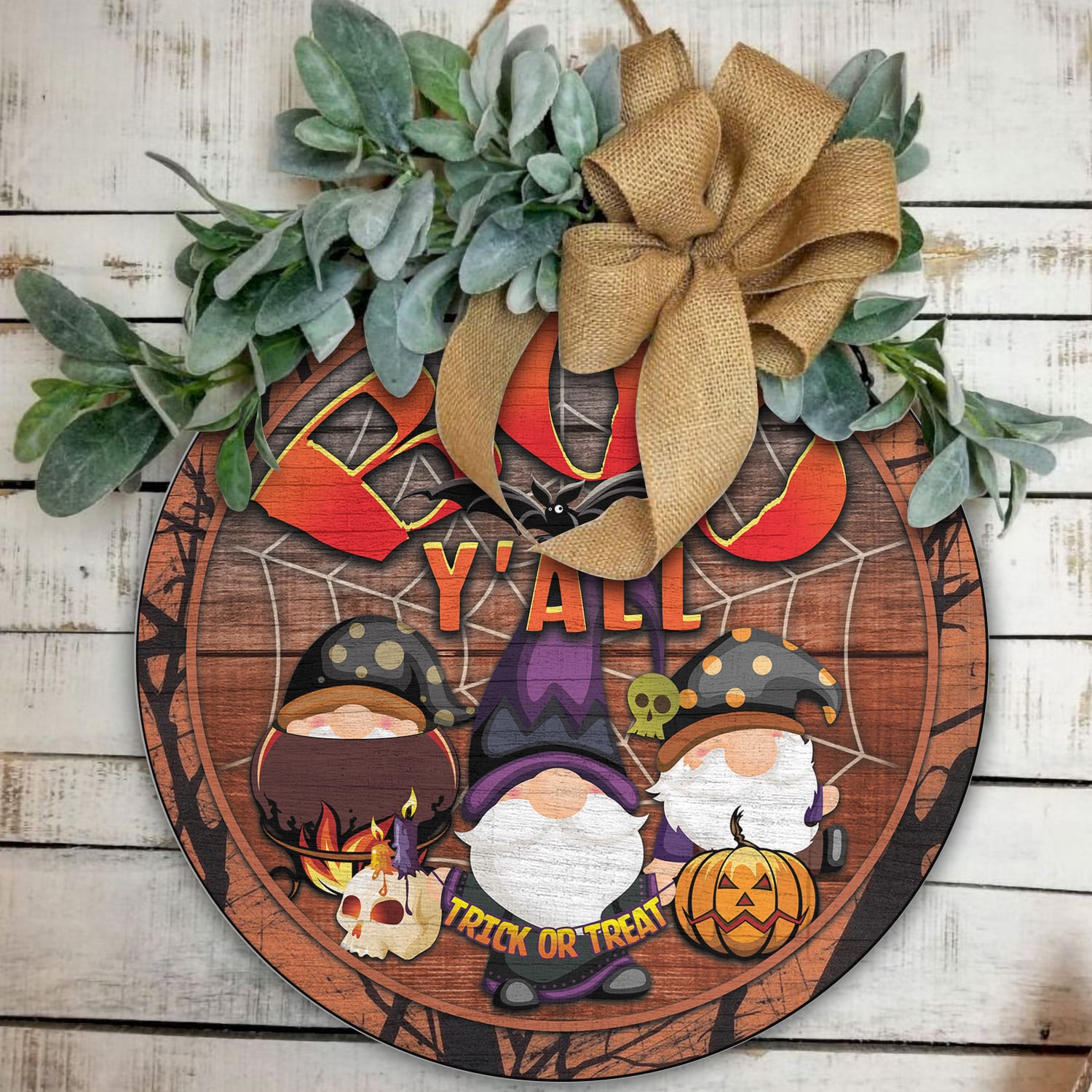 Let’s Shop Boo Y’all Gnome Decorative Circle Wooden Door Sign – Front Porch Sign Indoor Outdoor Decor!