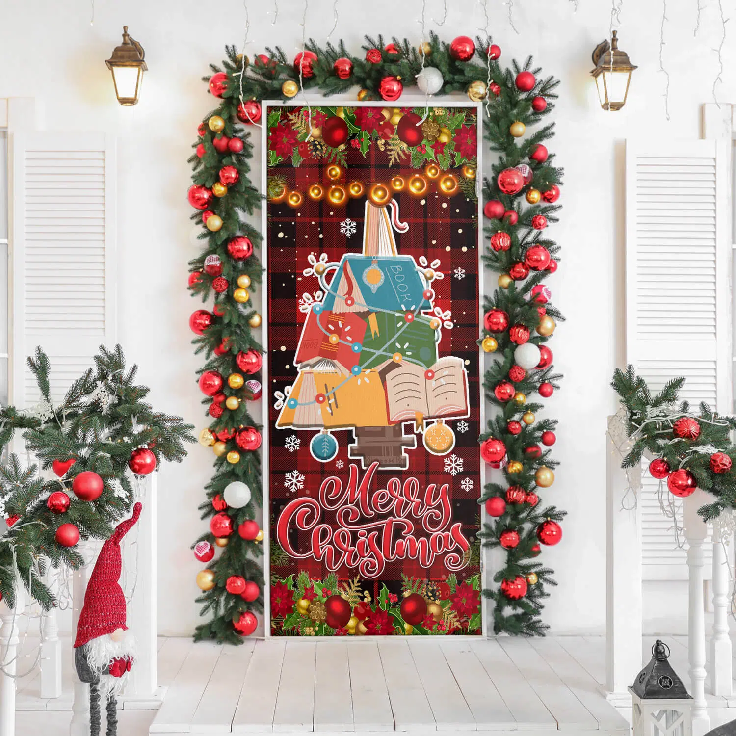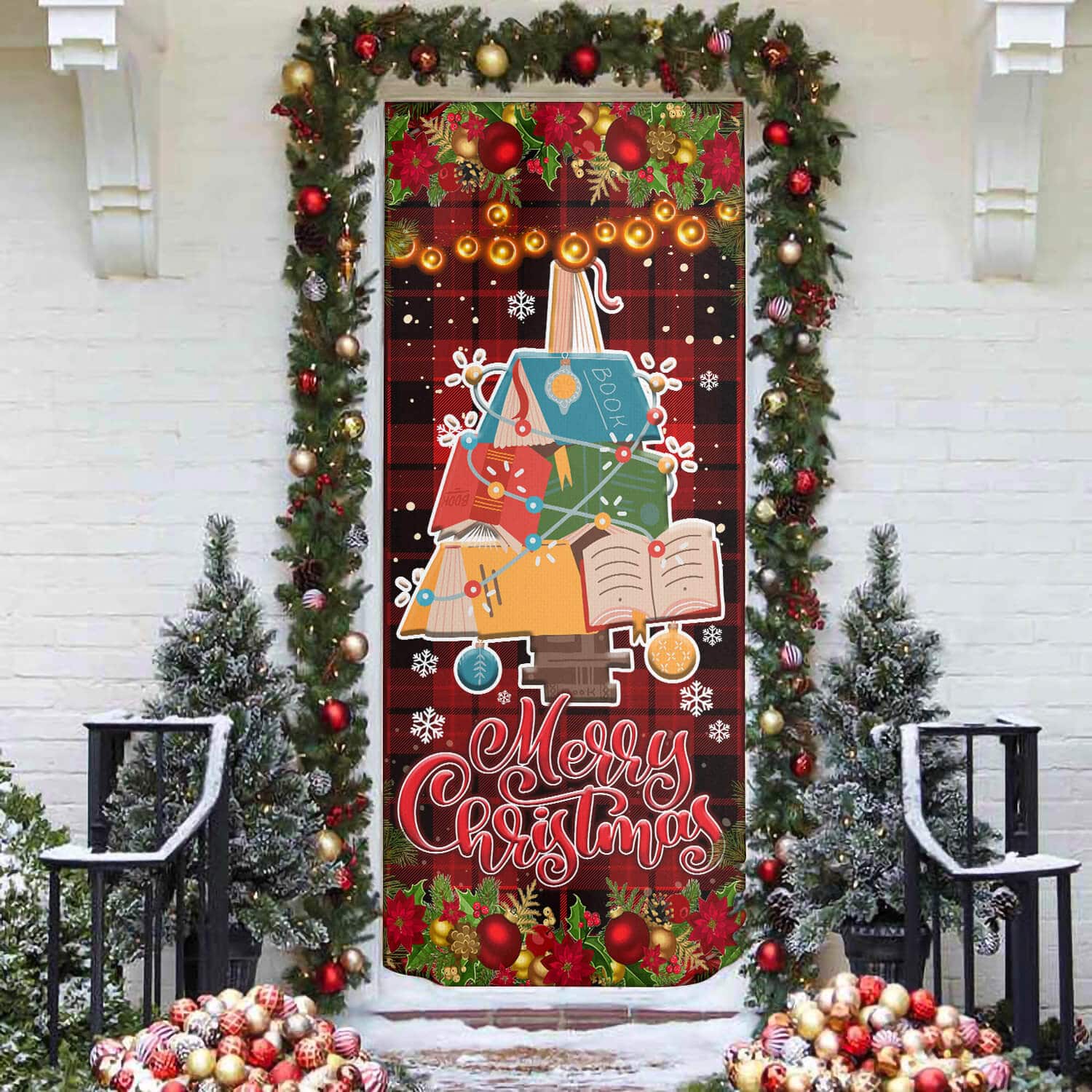 Let’s Shop Merry Christmas Decorative Front Door Cover – Christmas Tree Books Door Cover Decorations!