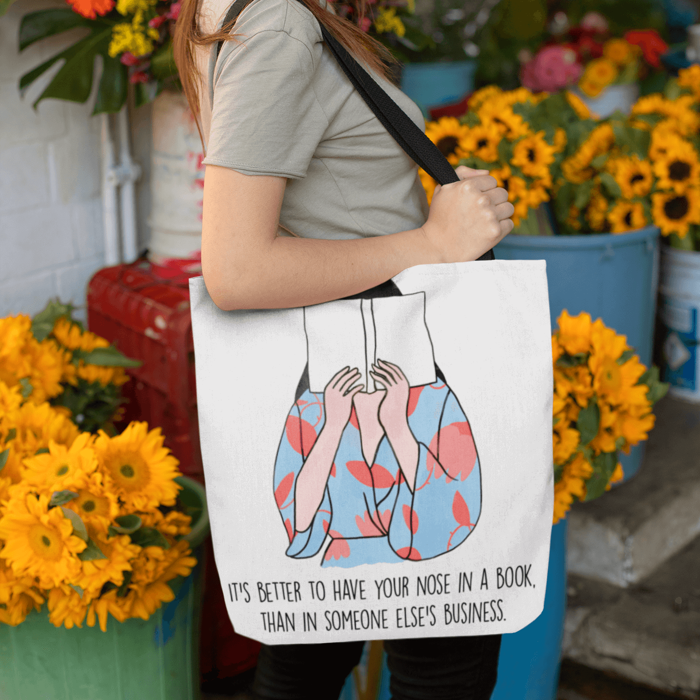 Let’s Shop Book Lover It’s Better to Have Your Nose in a Book All Over Print Tote Bag-Shoulder Bag-Reusable Shopping Bag!