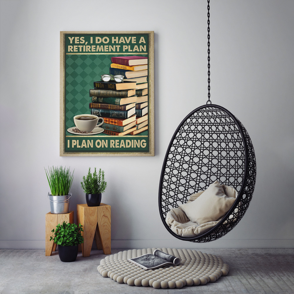 Let’s Shop Yes I Do Have A Retirement Plan I Plan On Reading Framed Canvas Prints – Book Lover Unframed Poster!