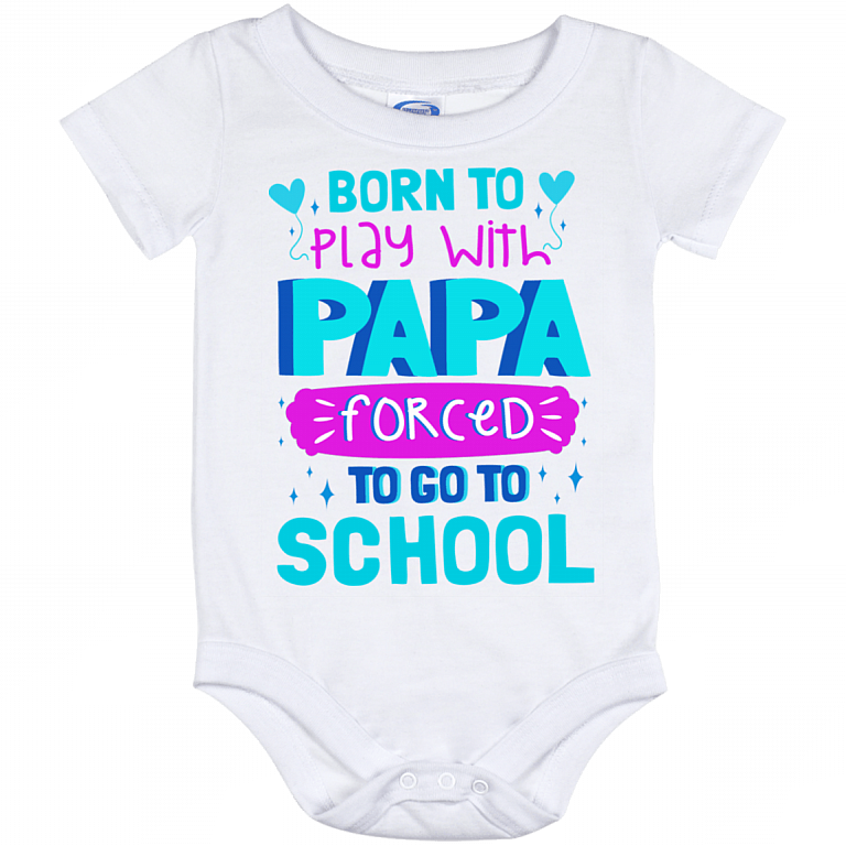 Shop Born To Play With Papa Forced To Go To School Funny Grandchildren Baby Onesie – Baby Infant Bodysuit.