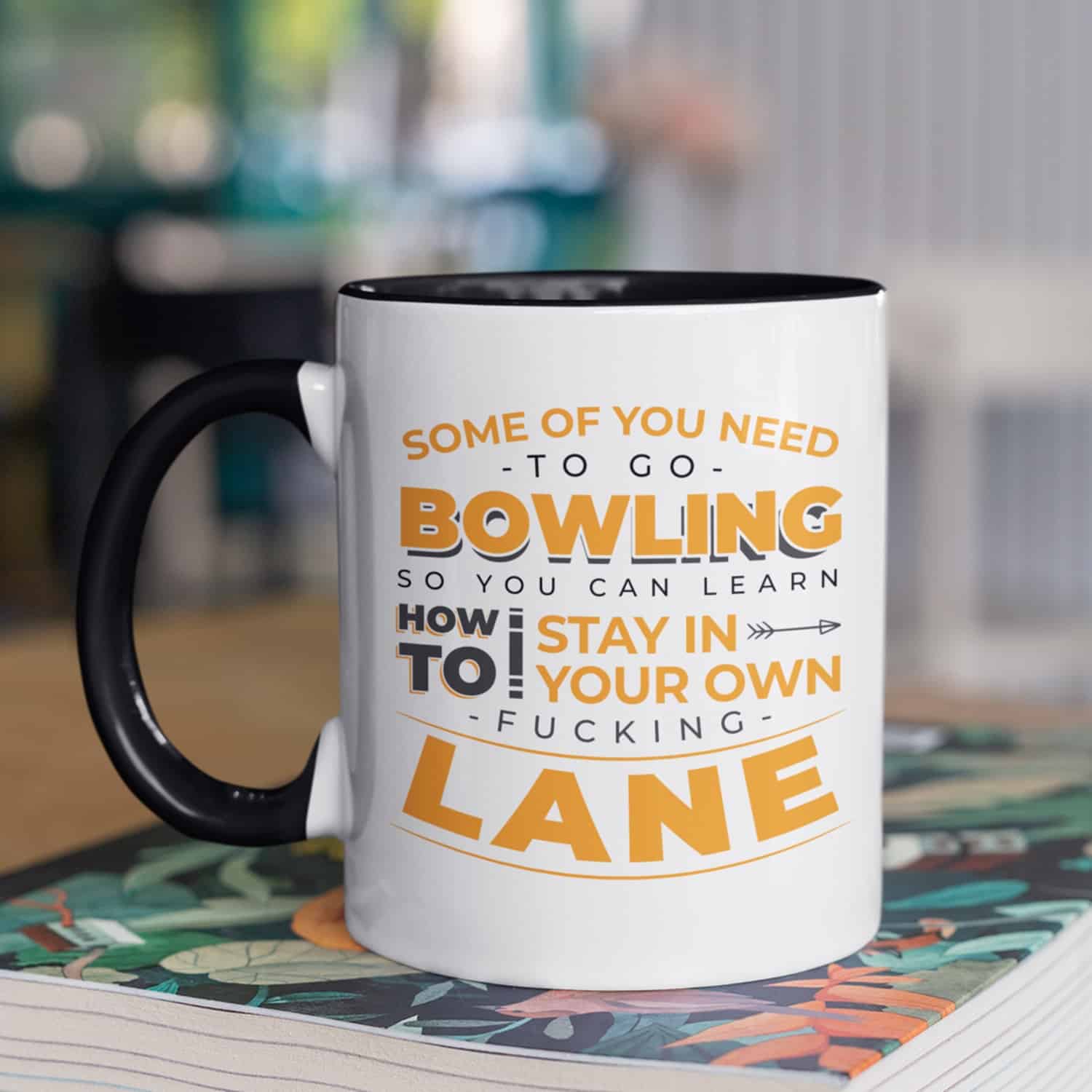 Let’s Shop Some of You Need to Go Bowling so You Can Learn how To Stay in Your Own Fucking Lane Funny Accent Mug!