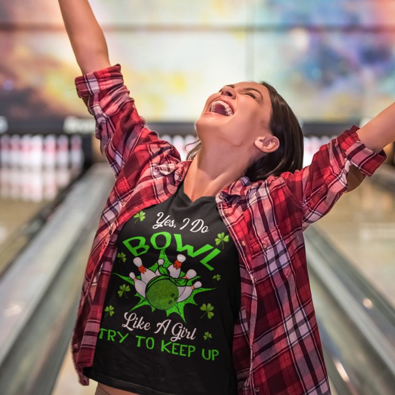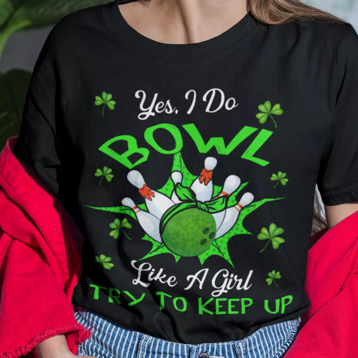 Let’s Shop Yes I Do Bowl Like A Girl Try To Keep Up St Patricks Day T-Shirt!