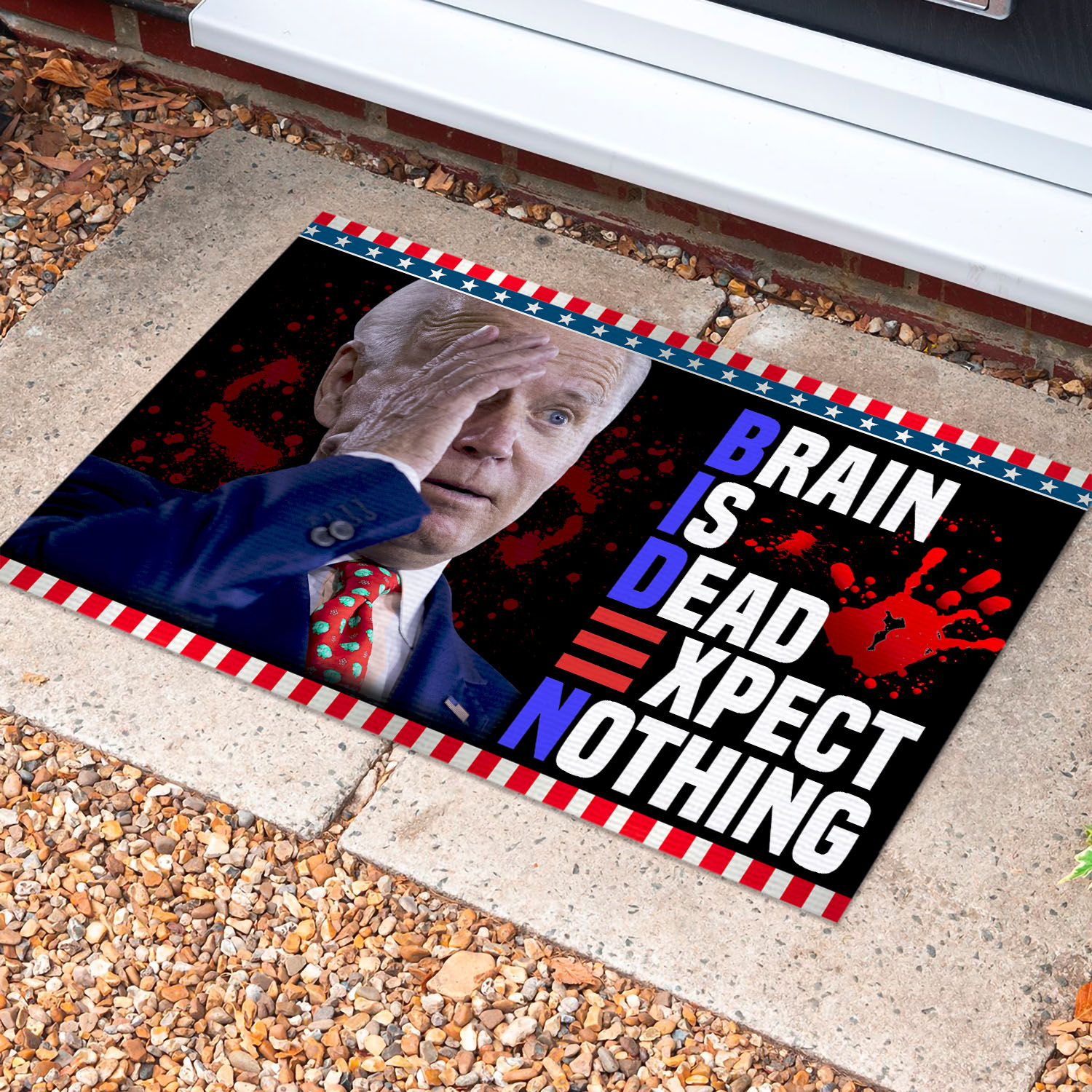Let’s Shop Brain Is Dead Expect Nothing Anti Biden Doormat Entrance Indoor Outdoor Decorative Doormat – Funny Political Mat!
