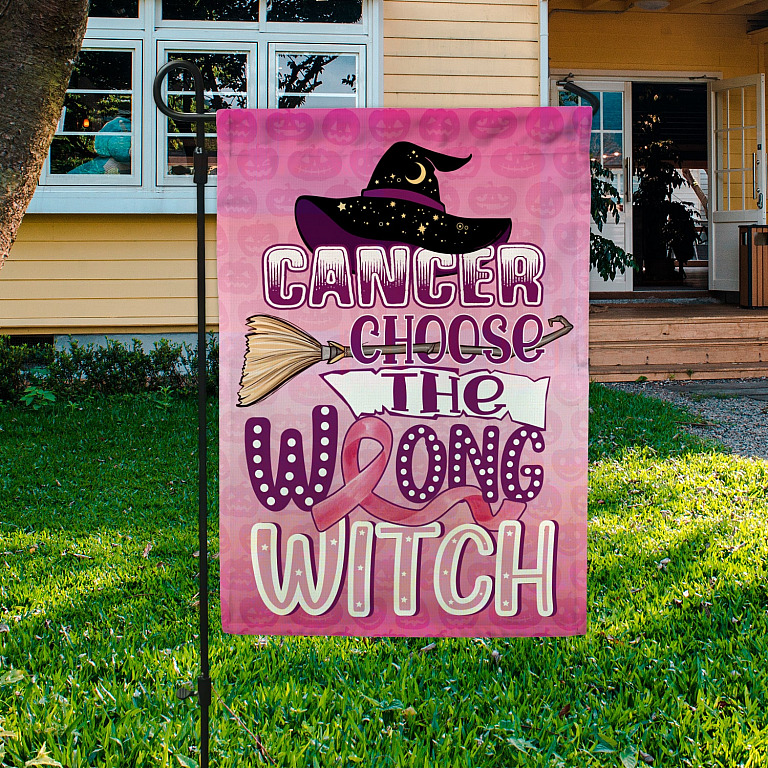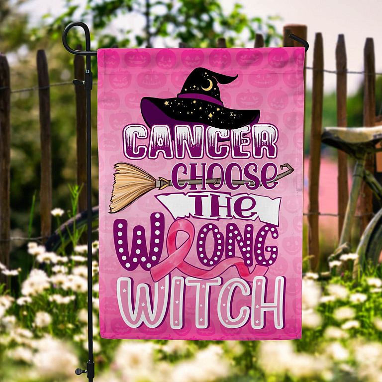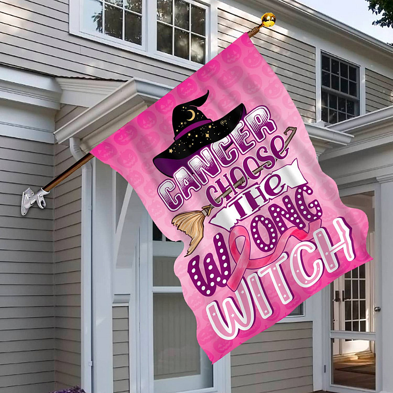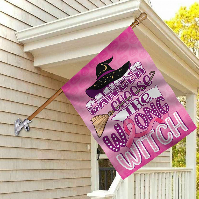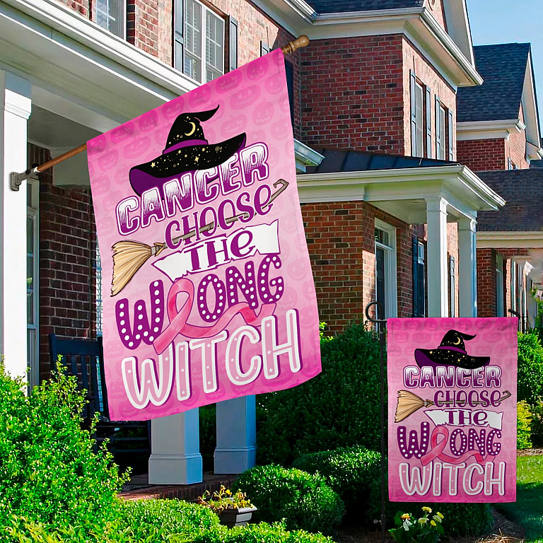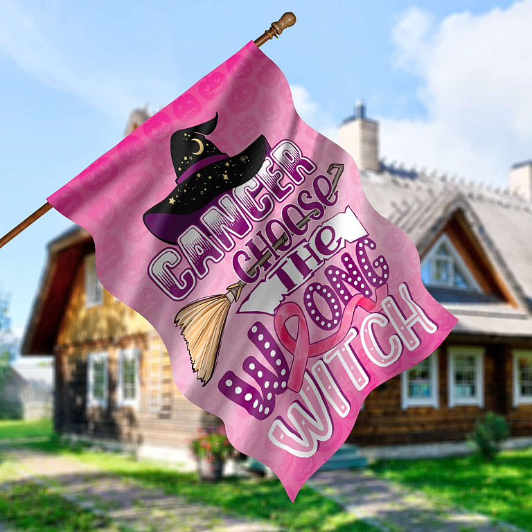 Let’s Shop Breast Cancer Awareness Cancer Chose The Wrong Witch Halloween Garden House Flag – Halloween Pumpkin Breast Cancer Awareness Flag!