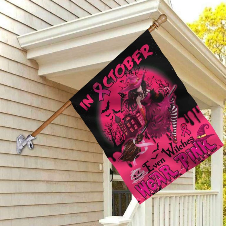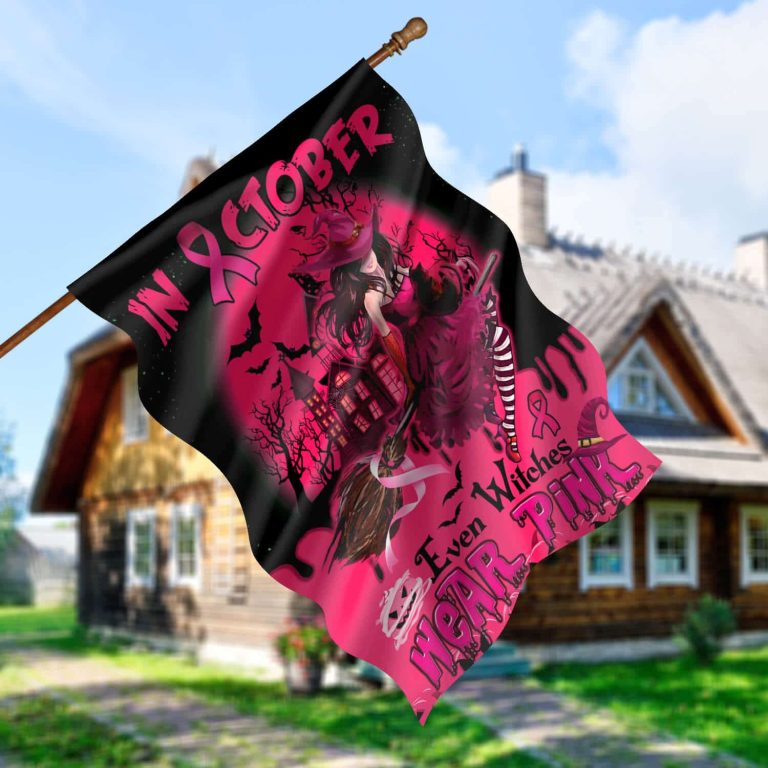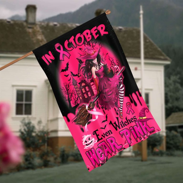 Let’s Shop In October Even Witches Wear Pink Flag – Breast Cancer Awareness Pink Ribbon Garden Flag – House Flag!