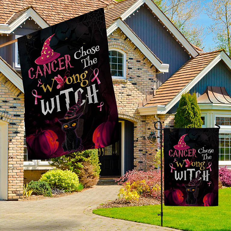 Let’s Shop Cancer Chose The Wrong Witch Outdoor Garden Flag – House Flag – Wall Flag!