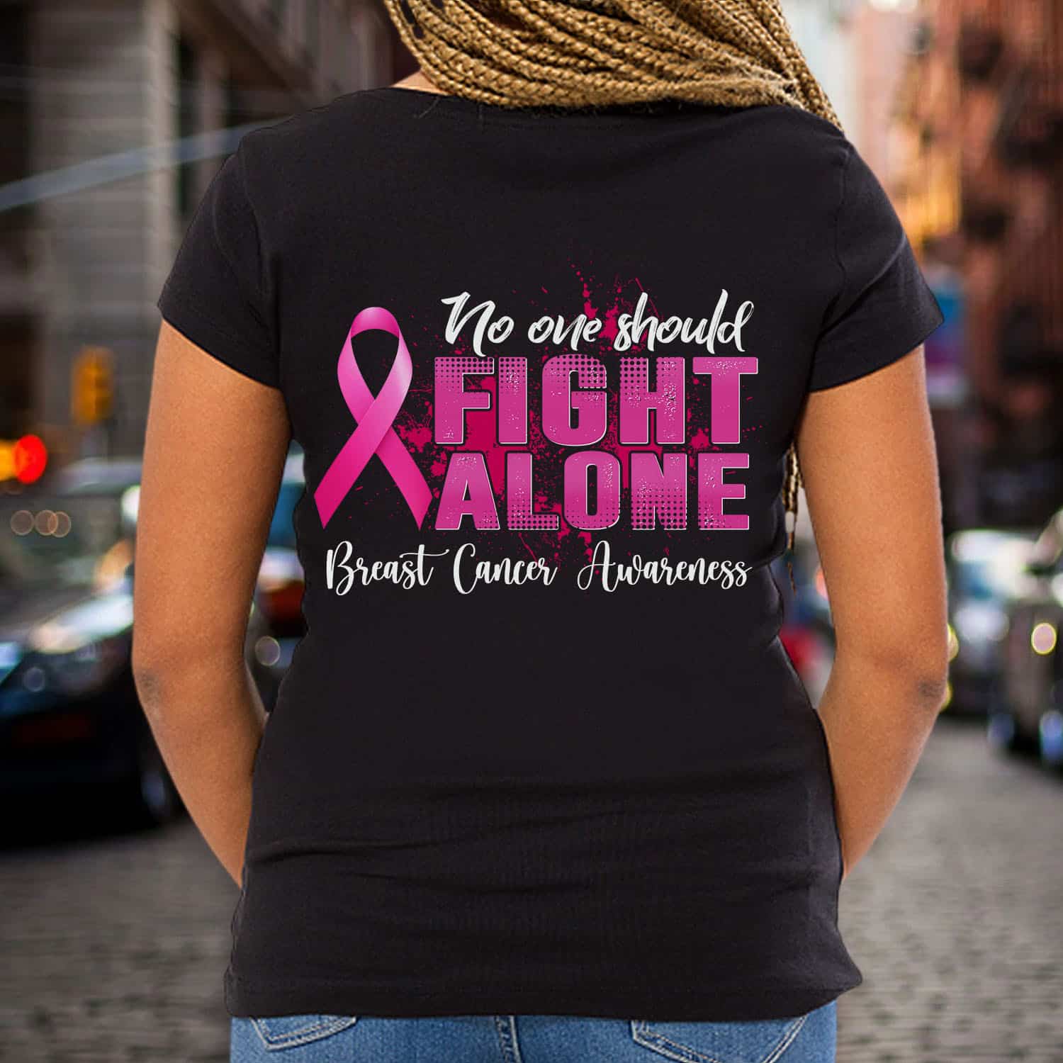 At CubeBik, besides custom apparel, we also offer tees, hoodies, sweaters, raglans, tanks, wall arts, canvases, posters, mugs, blankets, engraved jewelry, personalized necklaces, printed face masks, throw pillows, tote bags, hats, accessories and more on our website, so do not miss our other No One Fight Alone Shirt, Cancer Shirt, Cancer Support Shirt, Cancer Pink Shirt, Cancer 2 Sided Shirt, Support Breast Cancer Awareness Shirt, Breast Cancer Awareness Shirt, Breast Cancer Back Shirt, Breast Cancer Pink Shirt related merchandise. Moreover, all the products are made-to-order and one of a kind custom designs you can’t get elsewhere in normal stores. Let’s discover CubeBik.com now and find your favorite personalized items. We can’t wait to surprise and build beautiful memories with you and your loved ones.