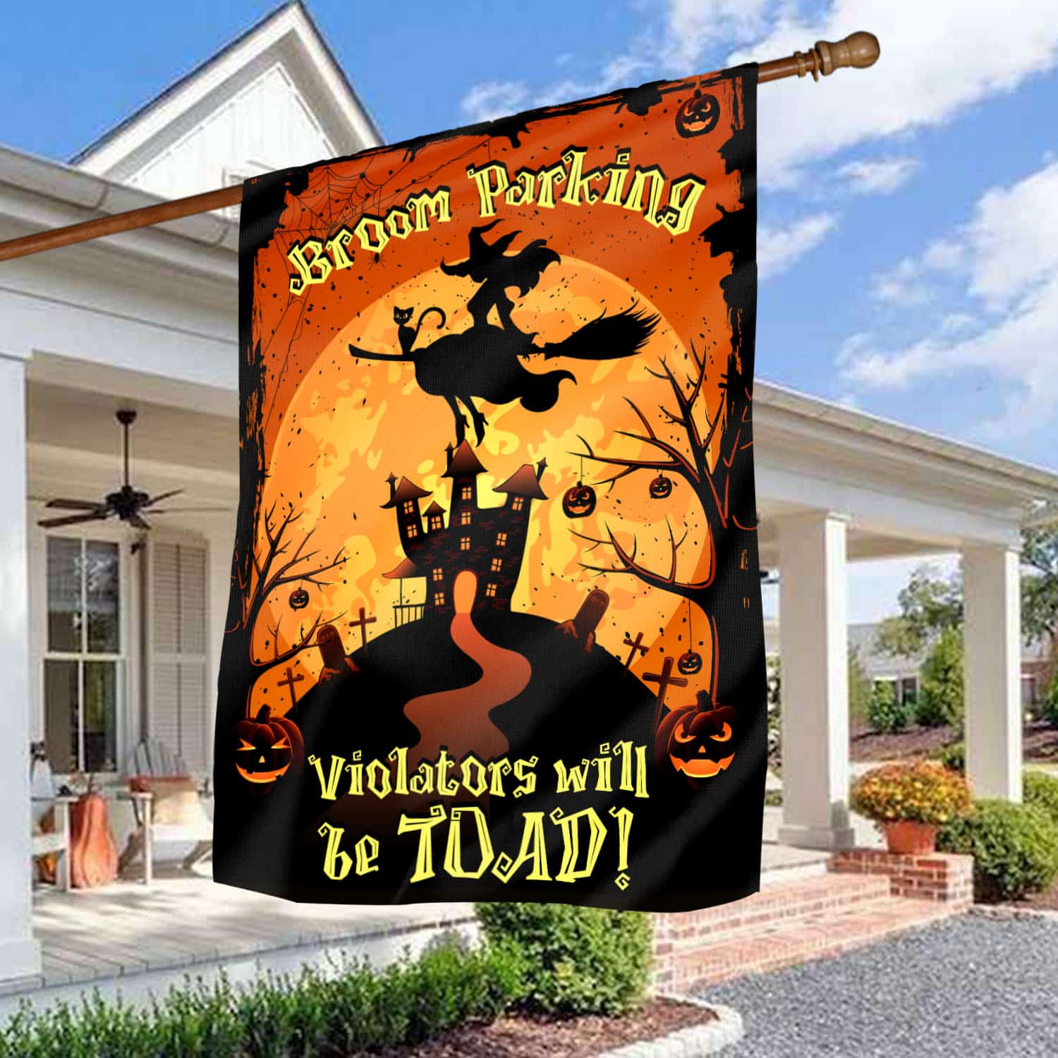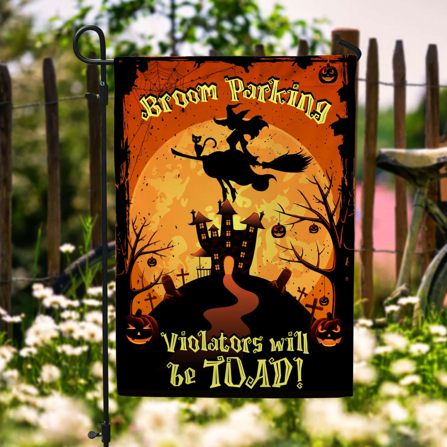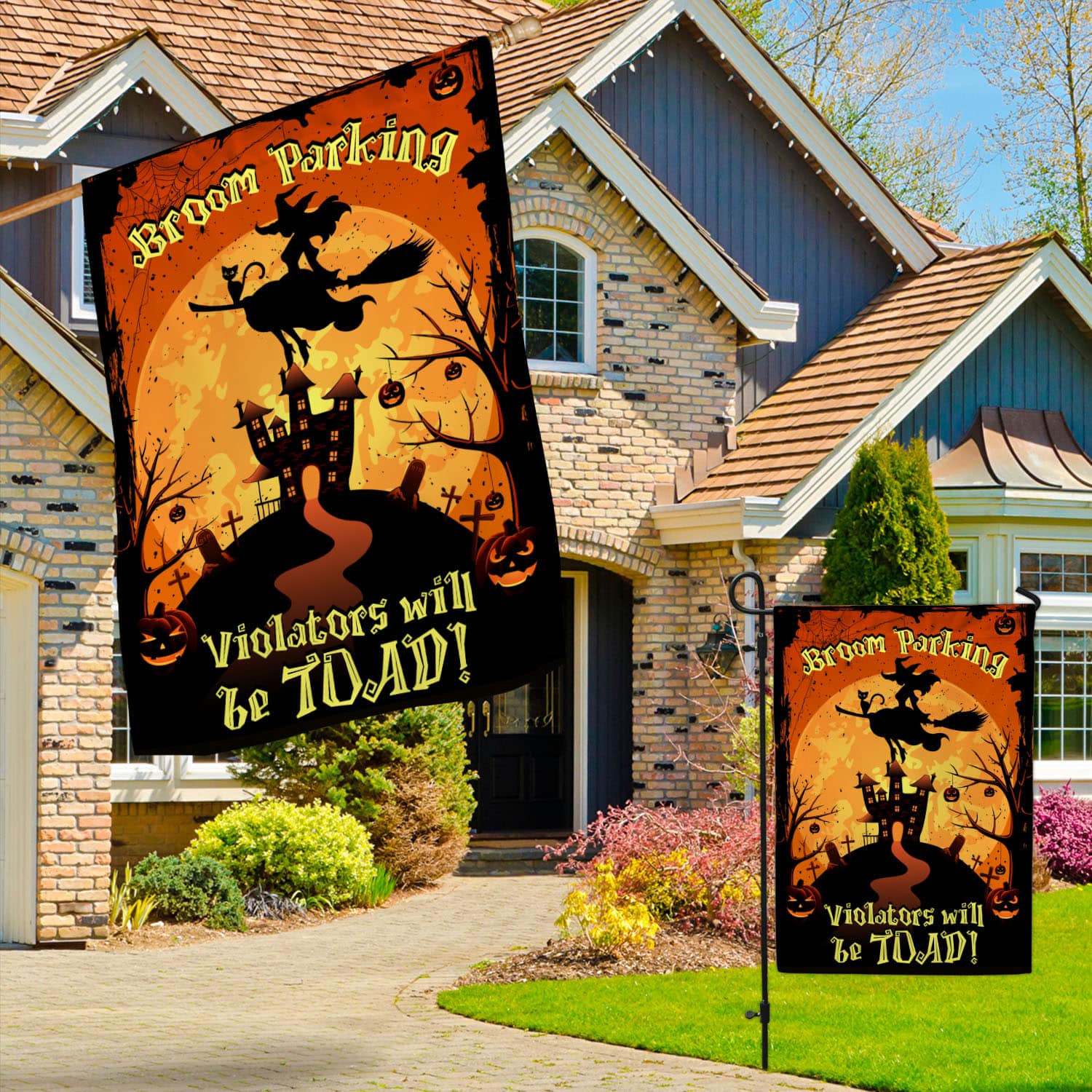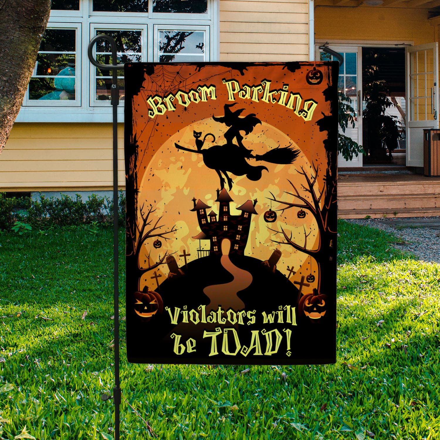 Let’s Shop Halloween Witch Broom Parking Violators Will Be Toad Garden Flag – Funny Witches House Flag!